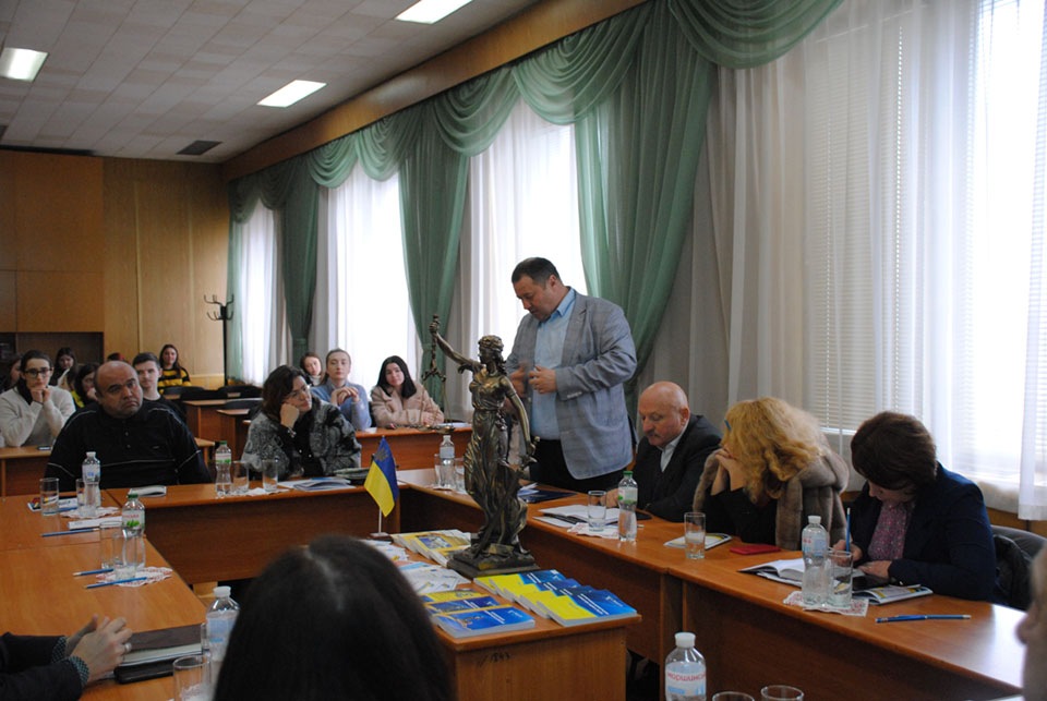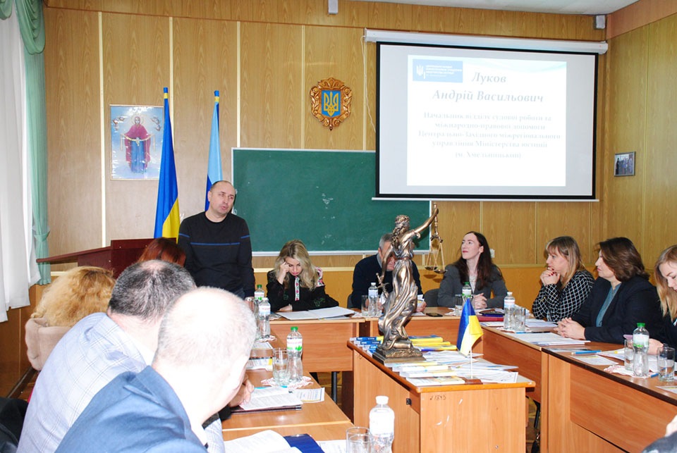 Андрій Луков, начальник відділу судової роботи та міжнародно-правової допомоги Центрально-Західного міжрегіонального управління Міністерства юстиції (м. Хмельницький), вказав на основні напрямки роботи відділу, міжнародно-правове співробітництво у цивільних та кримінальних справах. Андрій Васильович звернув увагу на проблеми, пов’язані із майновими правами дітей, в тому числі на аліменти. Тему прав дитини в умовах війни розвинула Лариса Зданевич, депутатка Хмельницької районної ради, адвокатка, членкиня мобільної бригади в рамках проекту моніторингу потреб і дотримання прав дітей ВПО у співпраці з UNICEF.