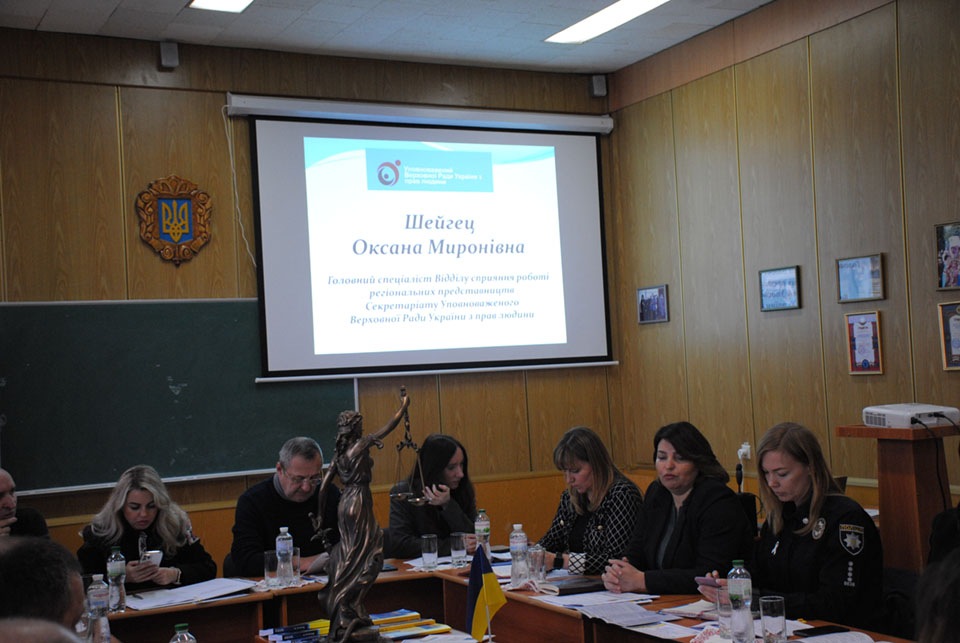 На засіданні конференції обговорювались результати моніторингу дотримання прав людини регіональним представництвом Уповноваженого ВРУ з прав людини в Хмельницькій області. У своєму виступі Оксана Шейгец розповіла про результати моніторингу дотримання прав людини, зокрема в рамках реалізації національного превентивного механізму, до закладів соціальної сфери. Зокрема, доповіла учасникам про порушення прав захист від катувань і жорстокого, нелюдського чи такого, що принижує гідність, поводження чи покарання – це факти про застосування до підопічних незаконної ізоляції в установах соціального захисту, не фіксація отриманих травм підопічними; порушення права на охорону здоров’я - неналежне виконання професійних обов’язків сімейними лікарями, які надають медичну допомогу підопічним у даних закладах, формальна організація проведення медичних оглядів та лікування, кількарічне незабезпечення закладів соціальної сфери медичними фахівцями певного профілю.
