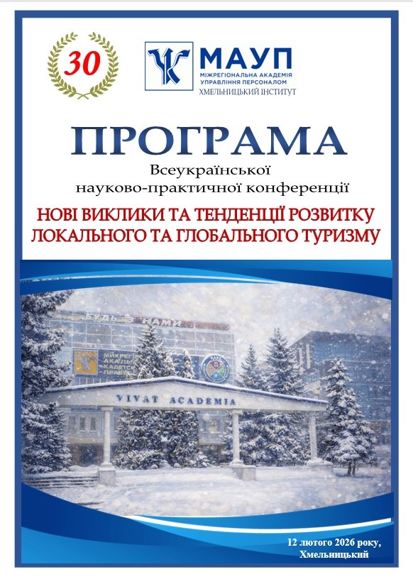 12 лютого 2026 року на базі Хмельницького інституту ПрАТ «ВНЗ «Міжрегіональна Академія управління персоналом» відбулася Всеукраїнська науково-практична конференція «Нові виклики та тенденції розвитку локального та глобального туризму».