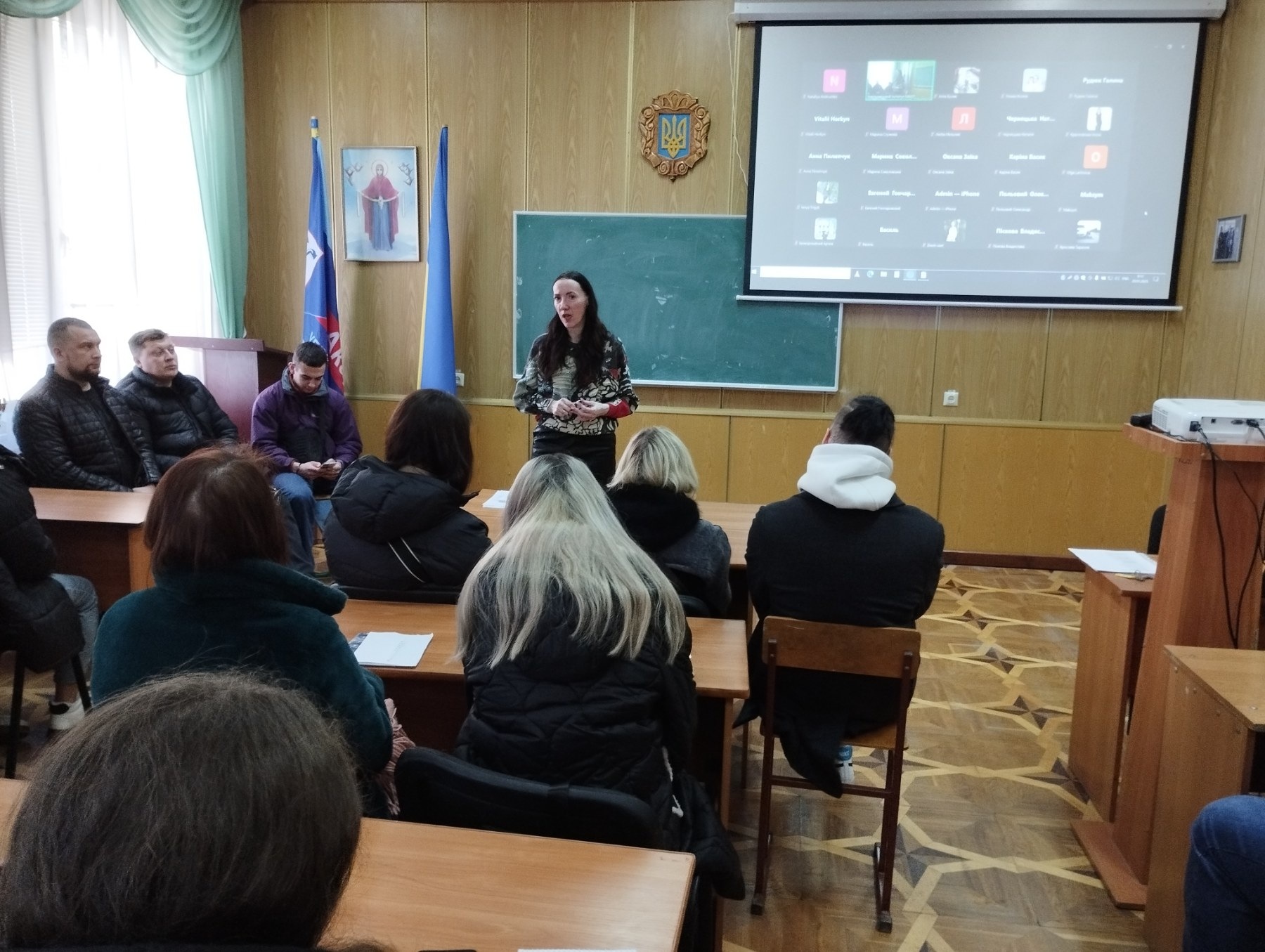 До студентів звернулася заступник директора інституту Парандій Валентина Олександрівна, яка розповіла про основні особливості організації освітнього процесу у період воєнного стану, про зміни у чинному законодавстві щодо зарахування, переведення та поновлення здобувачів вищої освіти. Валентина Олександрівна також звернула увагу студентів про порядок дій під час повітряної тривоги, наголосила про неухильне дотримання академічної та фінансової дисципліни. Завідувачі кафедр проінформували студентів про графіки та вимоги, щодо оформлення звітів з практики та підготовки магістерських робіт.