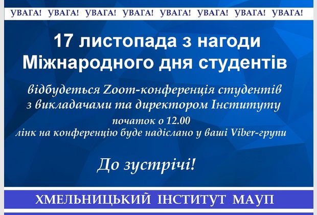 У Хмельницькому інституті МАУП відбулася Zoom-конференції з нагоди Міжнародного Дня студента
