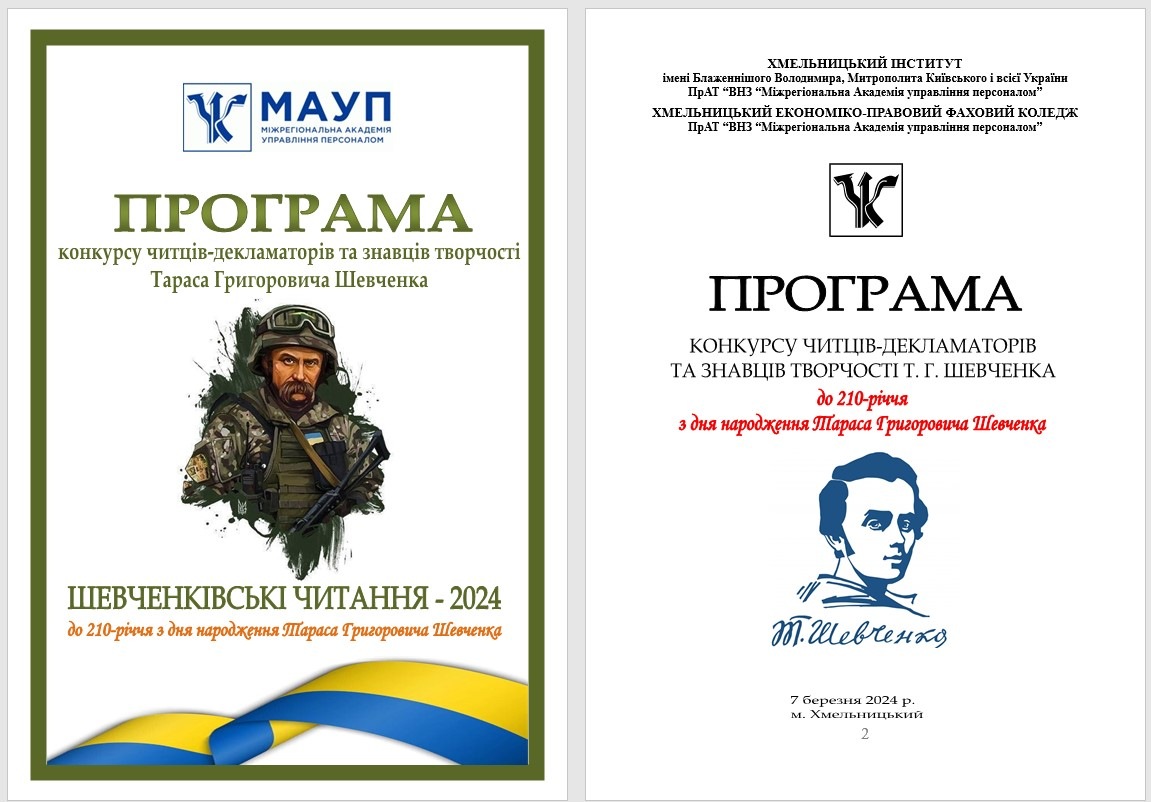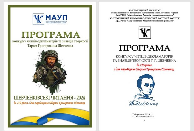 7 березня 2024 року у Хмельницькому інституті МАУП відбувся Конкурс читців-декламаторів та знавців творчості Т.Г. Шевченка. Захід проходив у змішаному форматі – online/offline.