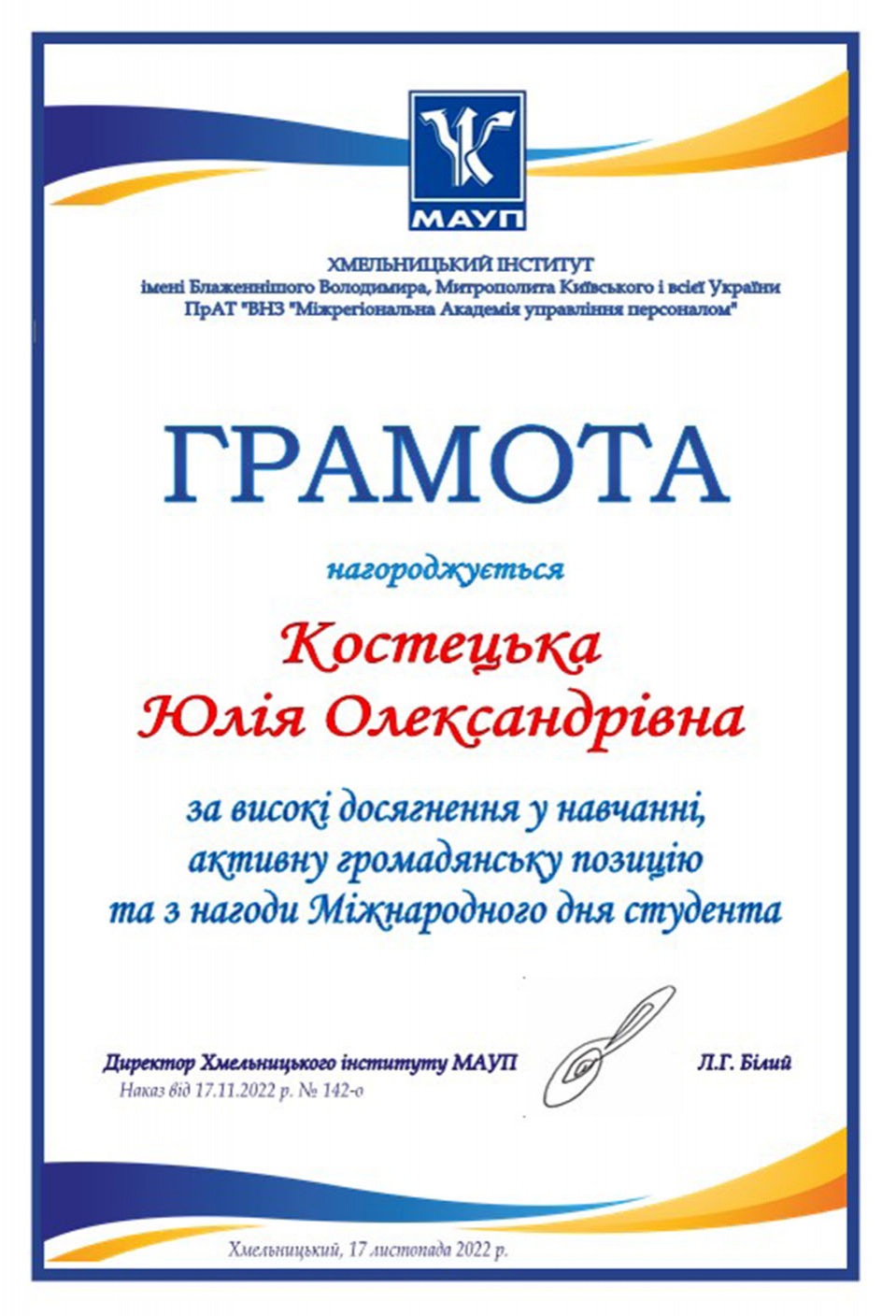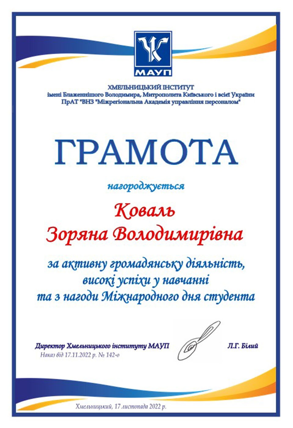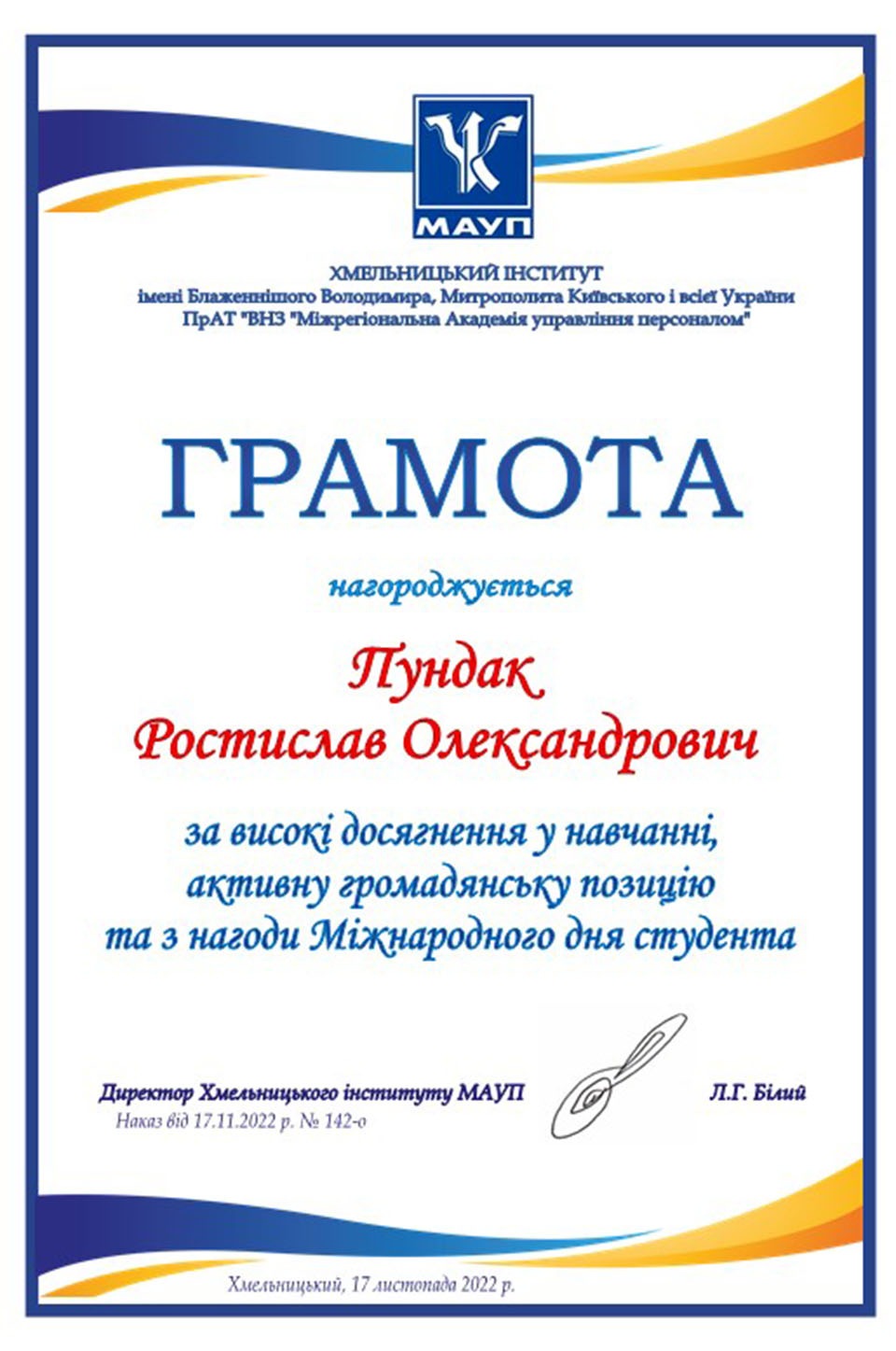 У Хмельницькому інституті МАУП відбулися урочистості з нагоди Міжнародного дня студента