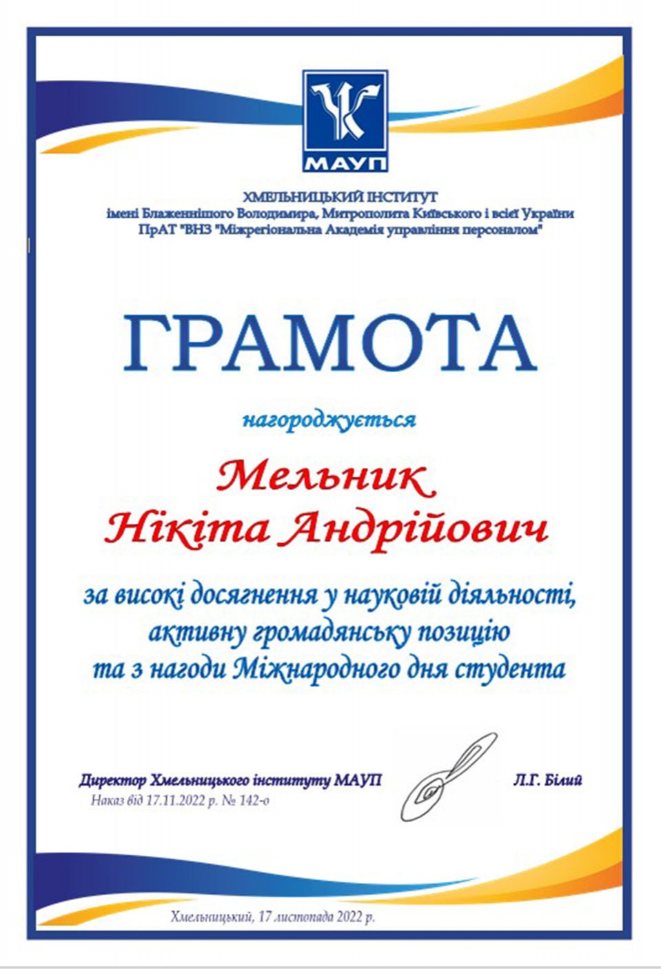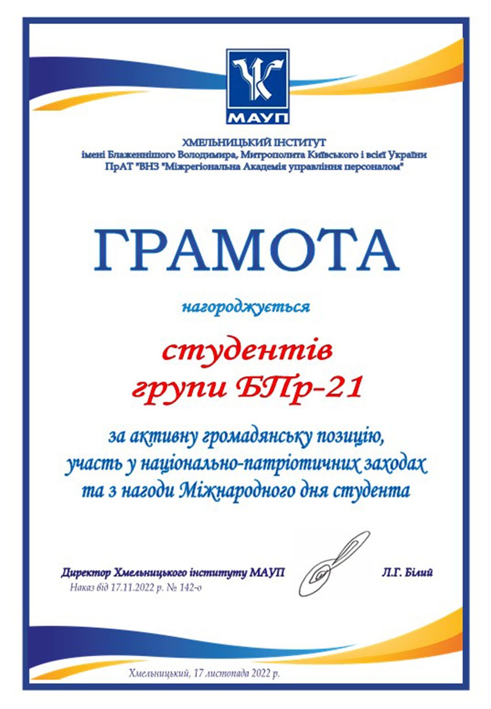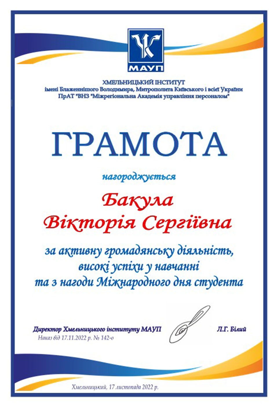 У Хмельницькому інституті МАУП відбулися урочистості з нагоди Міжнародного дня студента