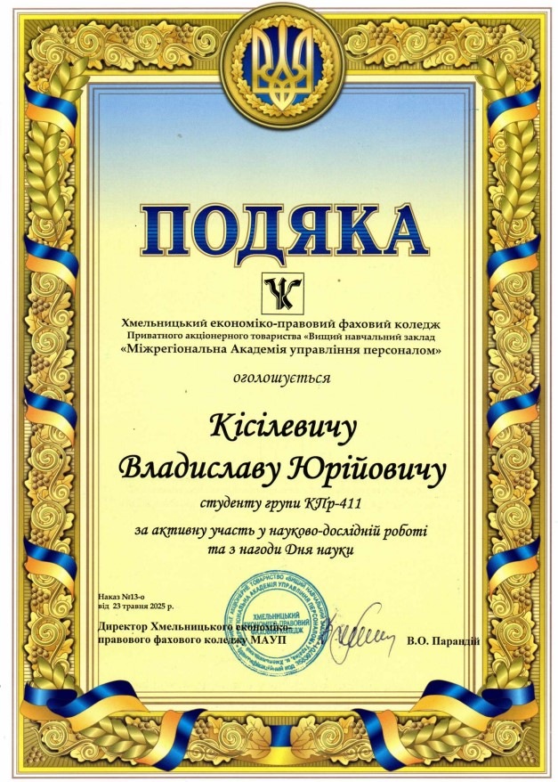 Кісілевичу Владиславу Юрійовичу, студент гр. КПр-41