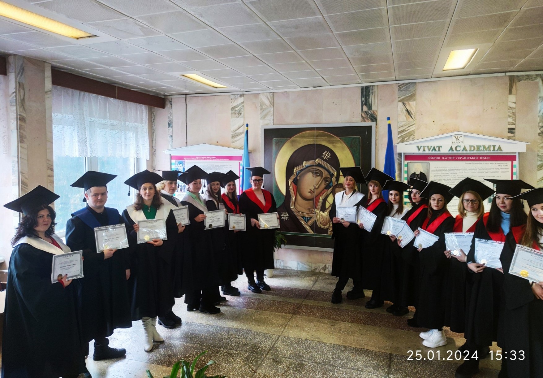 Багато хто з випускників на даний час боронить наше життя на фронті і у Інститут завітали їх дружини та діти, щоб отримати за них дипломи.
