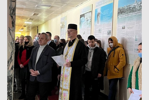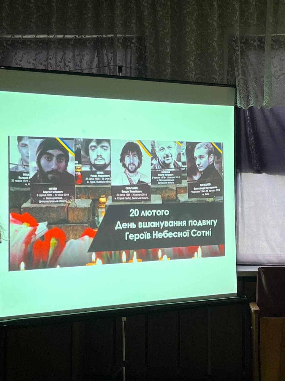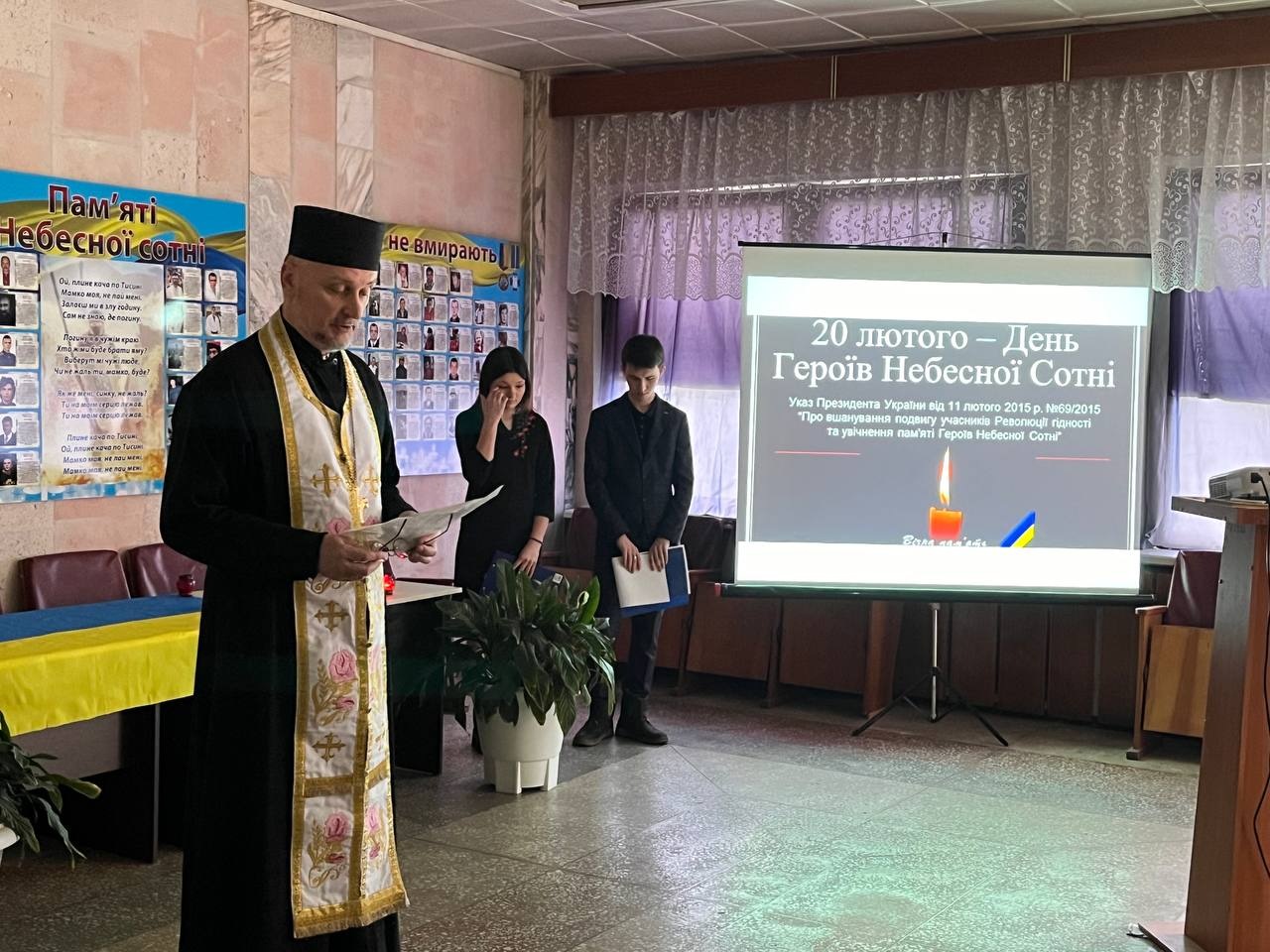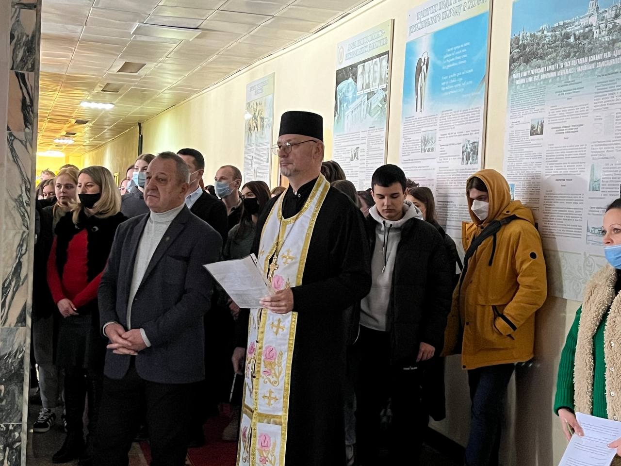 Студенти та викладачі у спільний молитві віддали шану загиблим у ті трагічні лютневі дні. Отець Олександр, завідувач кафедри українського православ’я і теології, наголосив на необхідності молитви за душі усіх хто загинув 10 років тому і тих, хто зараз віддав життя за Україну.