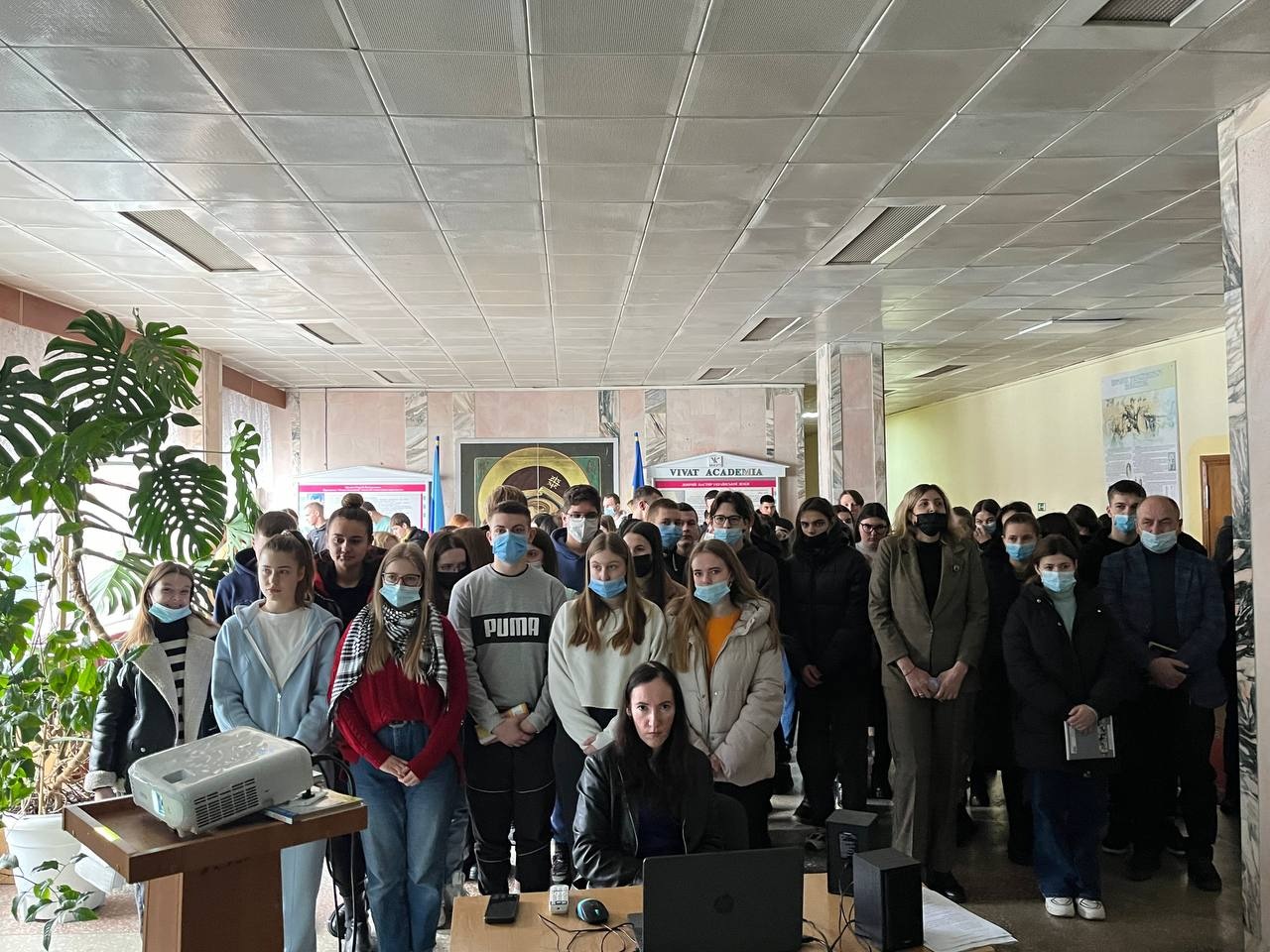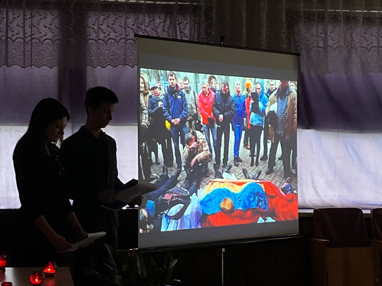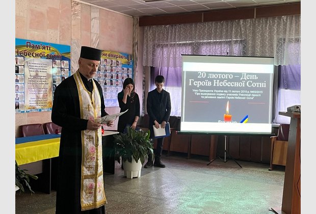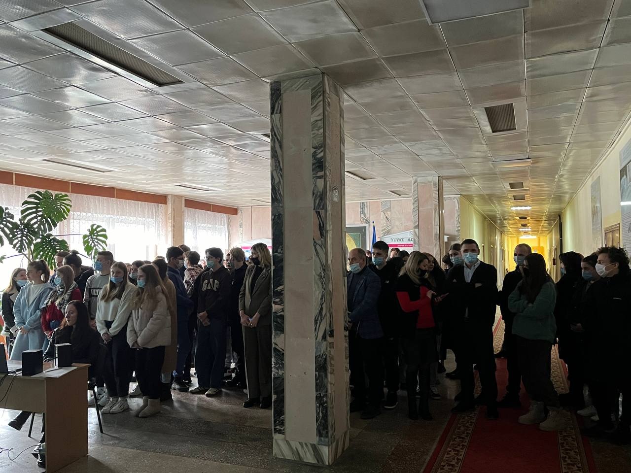 Студенти та викладачі у спільний молитві віддали шану загиблим у ті трагічні лютневі дні. Отець Олександр, завідувач кафедри українського православ’я і теології, наголосив на необхідності молитви за душі усіх хто загинув 10 років тому і тих, хто зараз віддав життя за Україну.