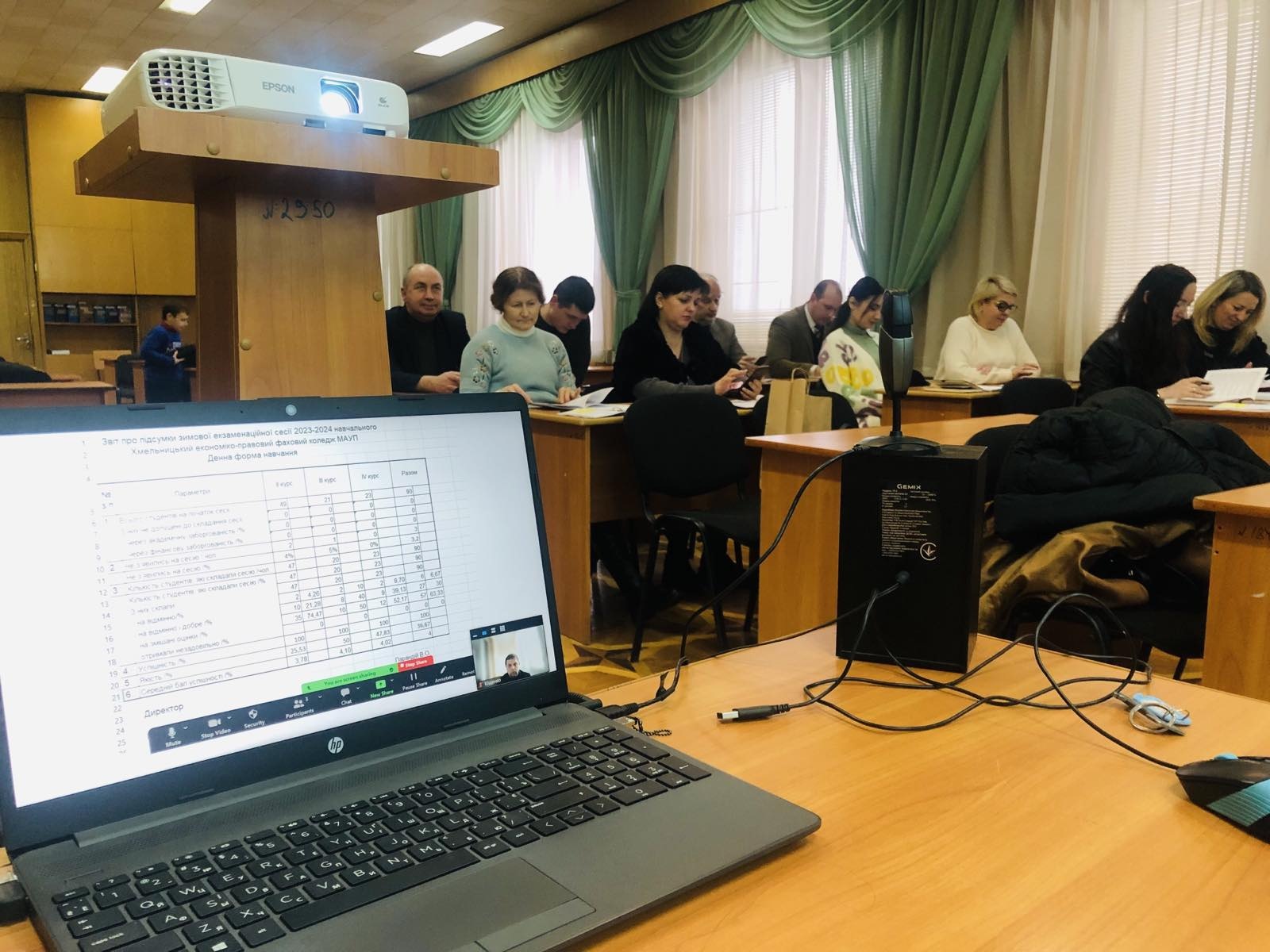 Завідувач навчальної частини Лариса Стребкова провела аналіз результатів зимової заліково-екзаменаційної сесії для студентів денної форми навчання та студентів заочної форми навчання за І семестр 2023-2024 н.р., а також члени Науково-методичної ради обговорили результати навчання студентів за індивідуальним графіком у Хмельницькому інституті МАУП та надали рекомендації, щодо покращення успішності студентів.