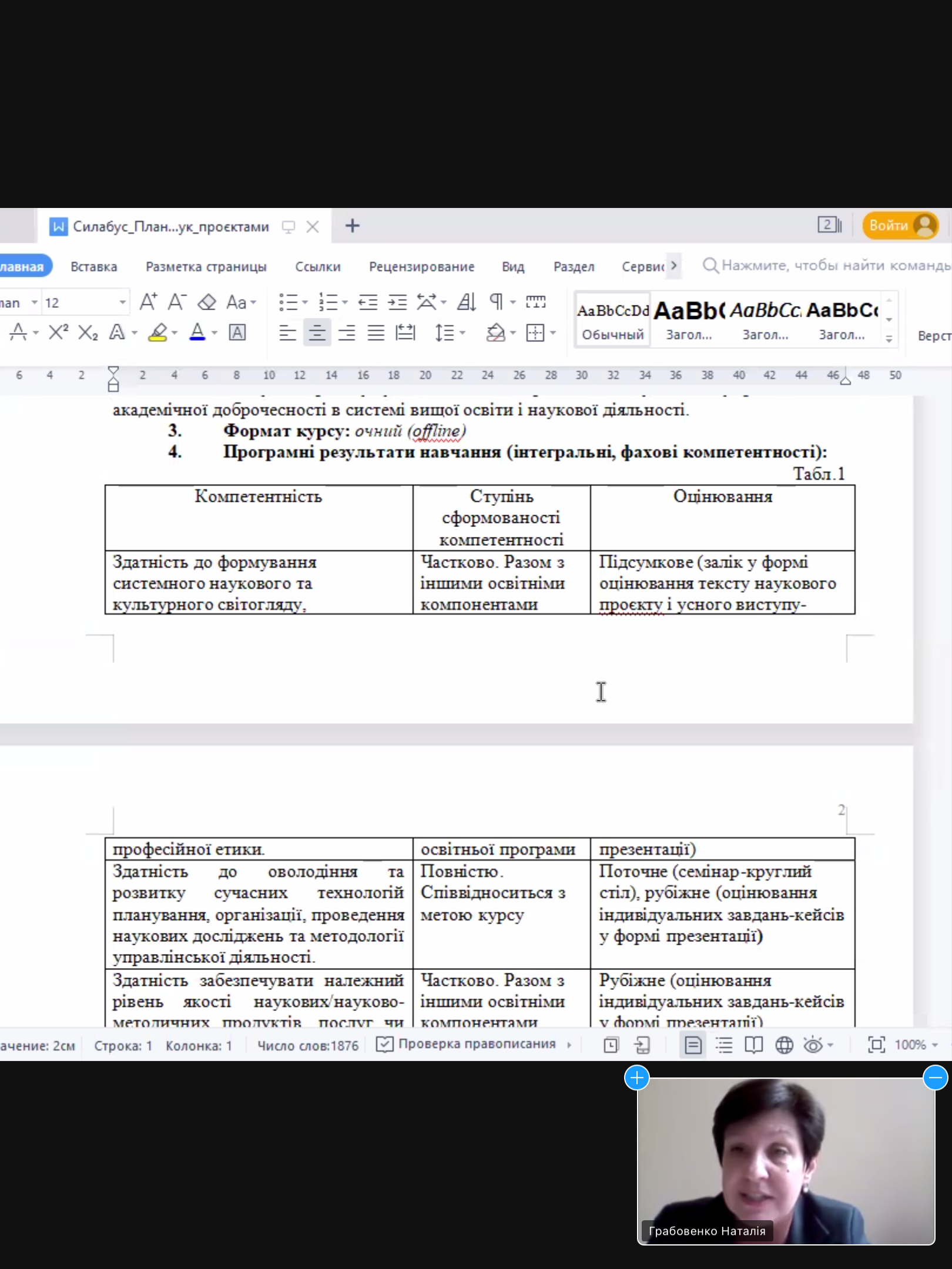 Наголосила на тому, що запровадження Національної рамки кваліфікацій передбачає введення європейських стандартів та принципів забезпечення якості освіти з урахуванням вимог ринку праці до компетентностей фахівців. Застосування компетентнісного підходу вимагає формування оновленої системи оцінювання: перехід від оцінювання знань здобувача вищої освіти до його результатів навчання та визначення рівня компетентності фахівця загалом. Запровадження компетентностей включає знання і розуміння (здатність знати і розуміти), знання як діяти (практичне і оперативне застосування знань до конкретної ситуації) і знання як бути (спосіб сприйняття й життя в соціальному контексті).
