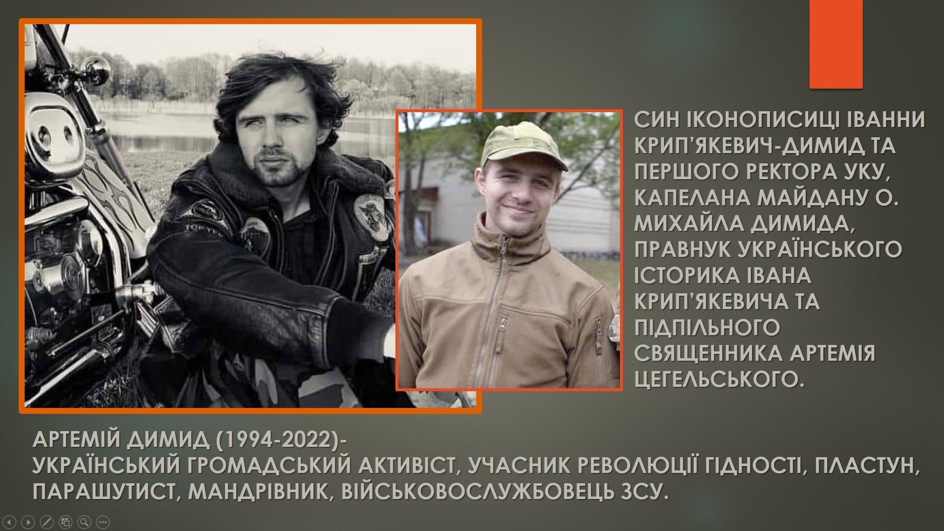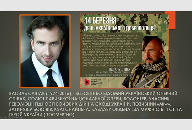 Кафедрою права та правоохоронної діяльності Хмельницького інститут МАУП було проведено захід до Дня українського добровольця. Кандидат історичних наук, доцент кафедри Валентина Парандій та доктор філософії в галузі права, доцент кафедри Алла Авсієвич розповіли студентам-правникам декілька історій українських добровольців: Василя Сліпака (позивний «МІФ»), Романа Ратушного, Артемія Димида, В’ячеслава Зайцева та Дмитра Коцюбайла (позивний «ДаВінчі»).