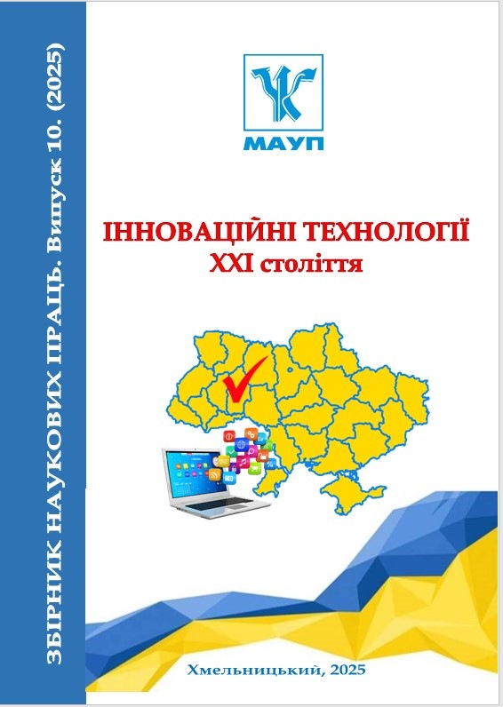 Інноваційні технології ХХІ століття: зб. наук. пр. / гол. ред. Л. Г. Білий. Хмельницький : Вид-во МАУП, 2024. Вип. 10. 184 с. Державний реєстраційний номер: 0123U104484 https://drive.google.com/file/d/1VQ7oXs688A0MasfgfLsxv4cdrsvoDfCx/view