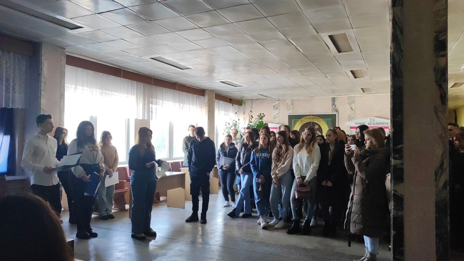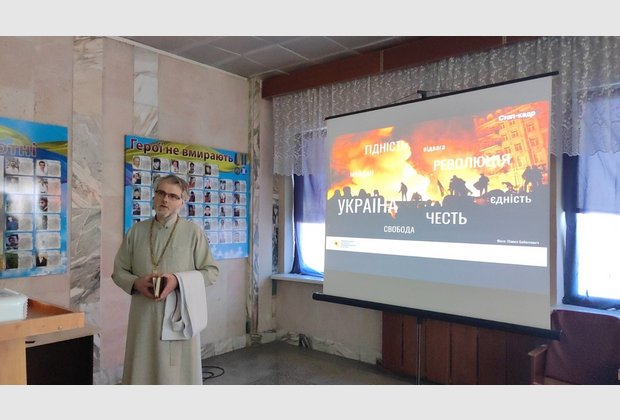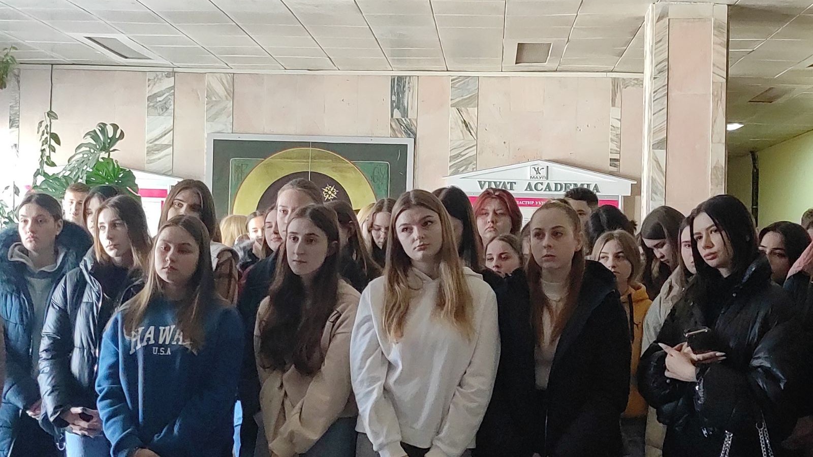 Студенти запалили свічки, згадали імена героїв, разом з отцем Андрієм прочитали молитву. А також ознайомилися з віршами українських поетів присвяченими Революції Гідності. Приємним сюрпризом було відео-звернення ношого студента, який навчався на спеціальності «Туризм» Максима Бевзи. Зараз він захищає нашу країну у складі батальйону бойових медиків. У відео Максим звернувся до студентів з закликом єднатися задля скорішої перемоги.