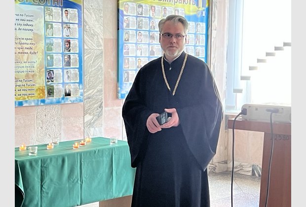 Студенти запалили свічки, згадали імена героїв, разом з отцем Андрієм прочитали молитву. А також ознайомилися з віршами українських поетів присвяченими Революції Гідності.