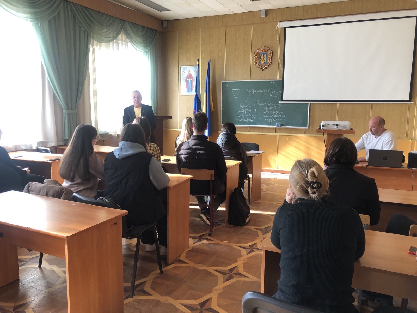 На зустрічі були присутні директор Інститут – Леонід Білий, директор Коледжу – Валентина Парандій, декан гуманітарно-економічного факультету – Олег Василишин, куратори академічних груп та члени новообраних студентських рад: Студентської ради Інститут, Студентської ради Коледжу та Студентської ради гуртожитку.