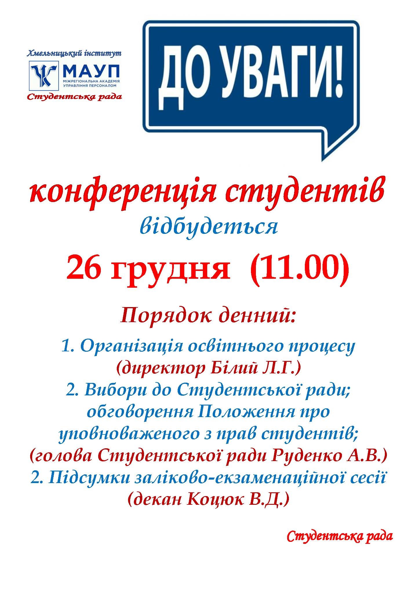 26 грудня у Хмельницькому інституті відбулася конференція студентів.