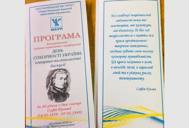 22 січня 2020 року відбулася Всеукраїнська науково-практична конференція “ДЕНЬ СОБОРНОСТІ УКРАЇНИ: ІСТОРИКО-ПОЛІТОЛОГІЧНІ ДИСКУСІЇ” (до 80-річчя з дня смерті активної учасниці руху за українізацію освіти, авторки «Українського букваря», членкині Української Центральної Ради Софії Русової (18.02.1856 р. - 05.02.1940 р.).