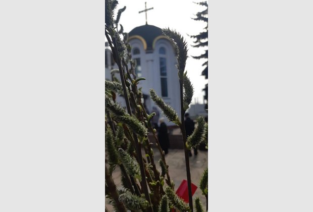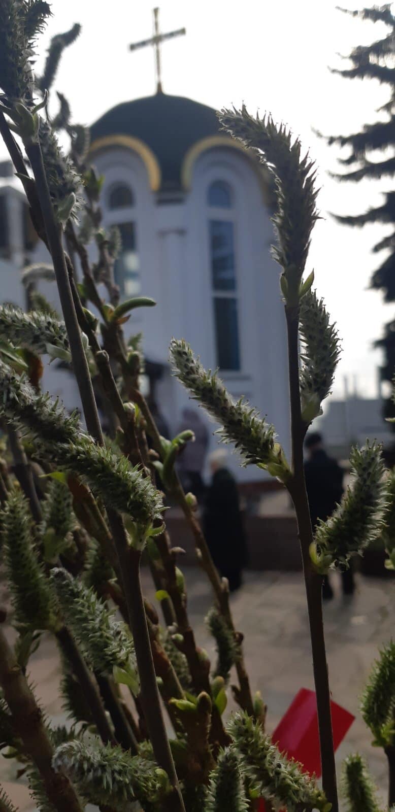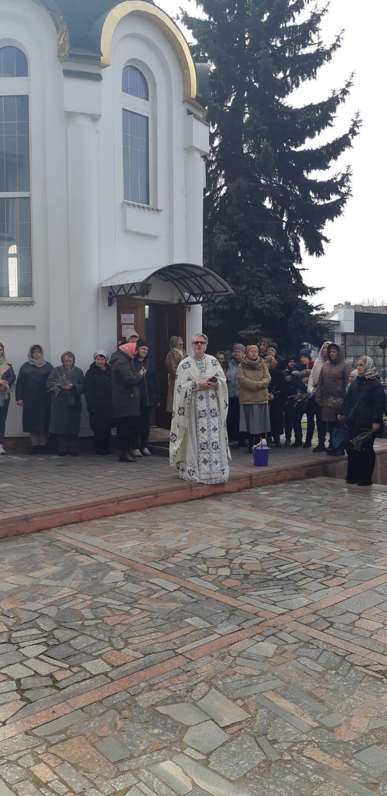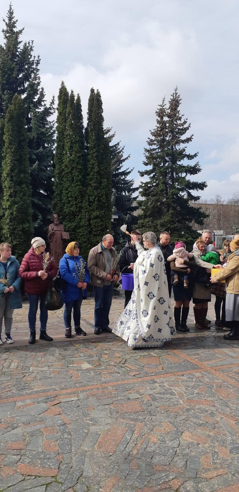 Священник та усі віряни піднесли молитви до Бога за захисників Батьківщини, за перемогу України та за весь наш український народ, а також отець Андрій освяченою водою окропив гілля верби, які віряни в цей день принесли до храму.