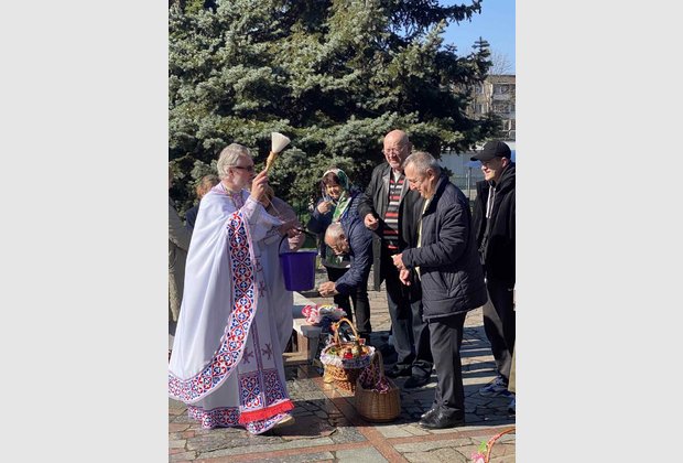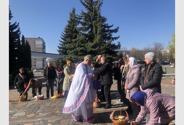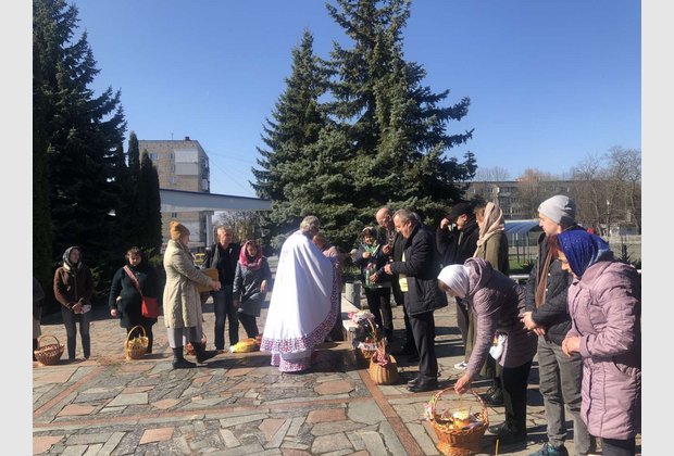 Правоохоронні органи надали дуже чіткі рекомендації, щодо організації великоднього богослужіння, аби це не порушувало режиму воєнного часу. Тому враховуючи політичний режим воєнного стану та комендантську годину богослужіння розпочалося вранці 24 квітня. Прихожани Храму отримали можливість освятити свої великодні кошики та помолитися.