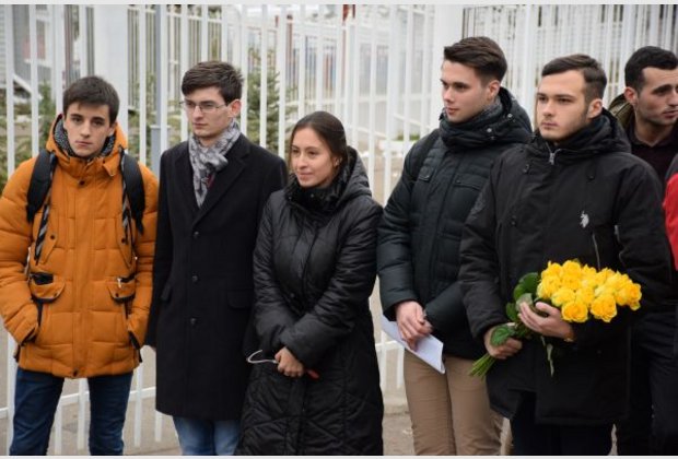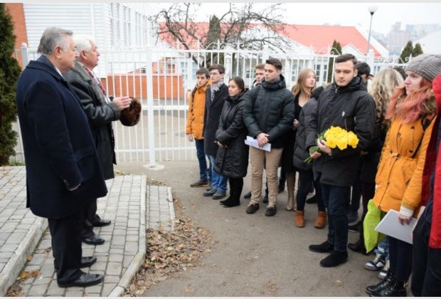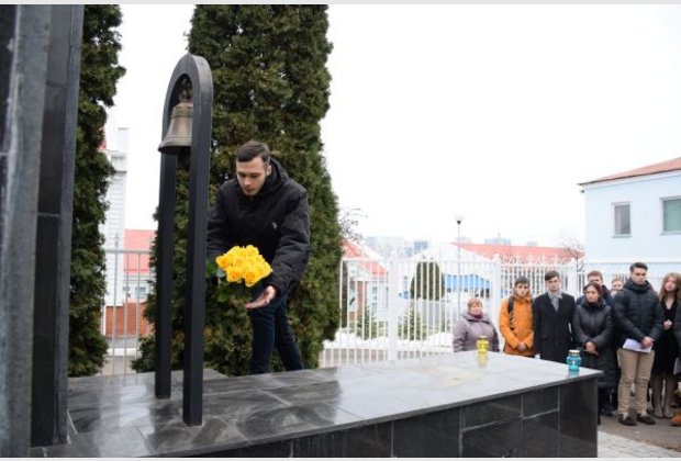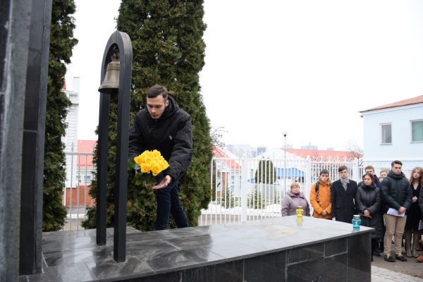 Після промови проректора голова Студентської ради МАУП Микола Шевченко від імені студентського колективу поклав квіти до монументу.