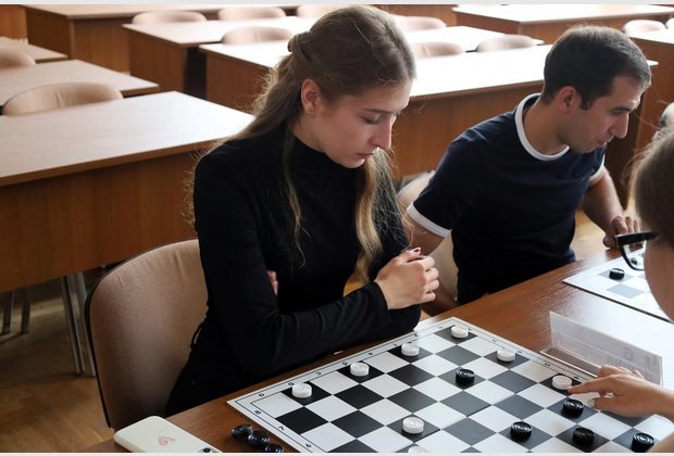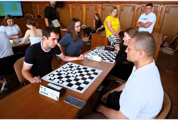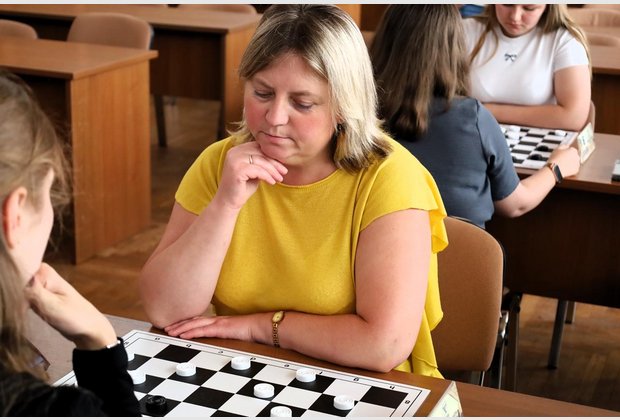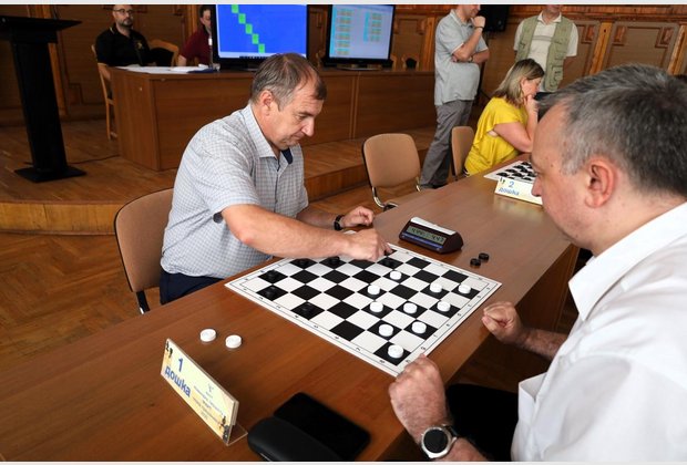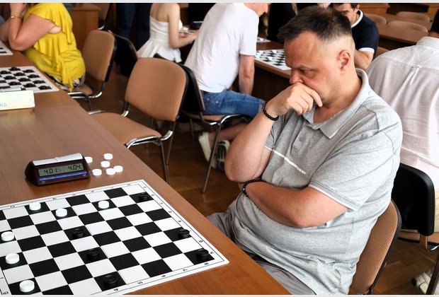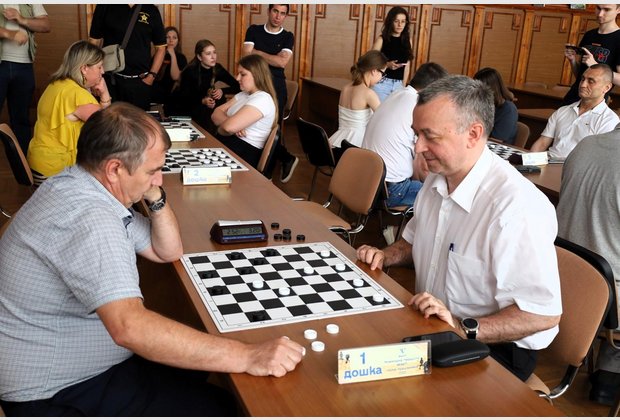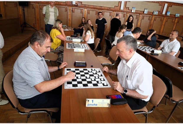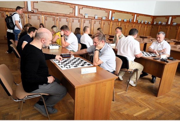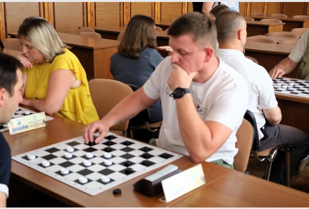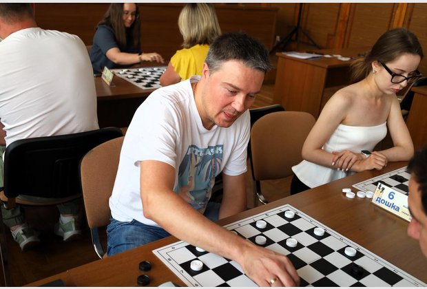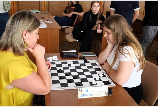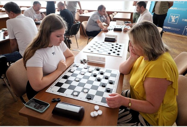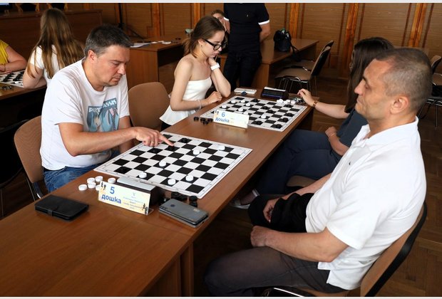 У кожній команді - троє гравців: два чоловіки та одна жінка. І хоча шашки - гра тиха, напруга за дошками була цілком відчутною.