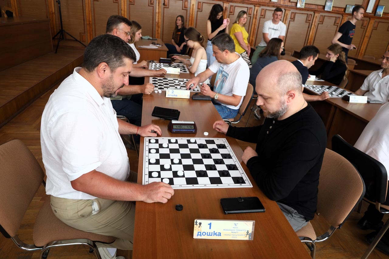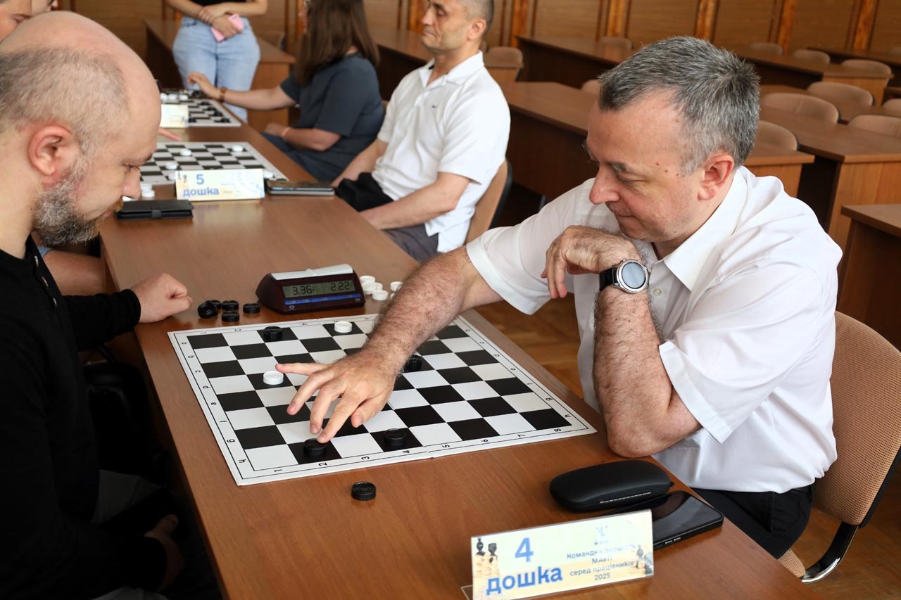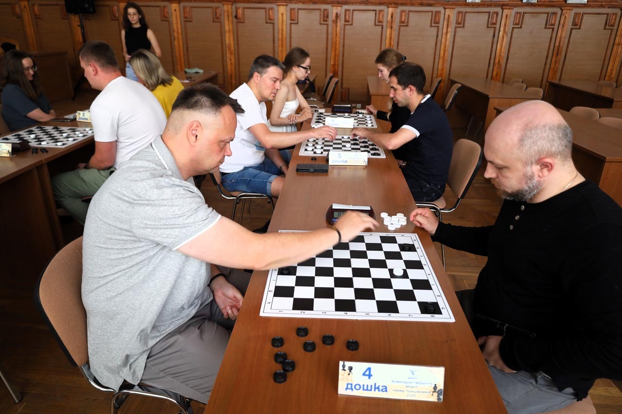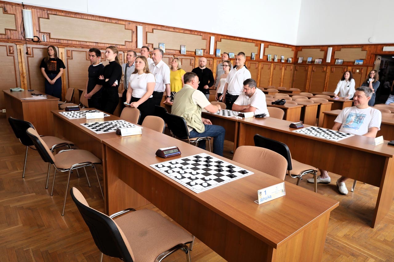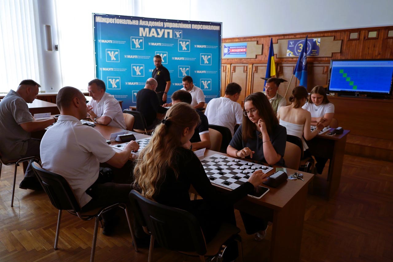 17 липня в конференц-залі Міжрегіональної Академії управління персоналом відбулися захопливі спортивні змагання з шашок серед працівників, які зібрали п’ять команд із різних навчальних підрозділів. В атмосфері дружнього суперництва та командної підтримки учасники з головою поринули у світ логіки, стратегії та емоцій.