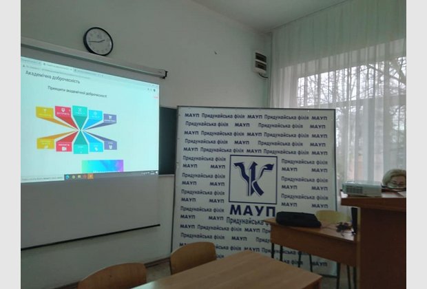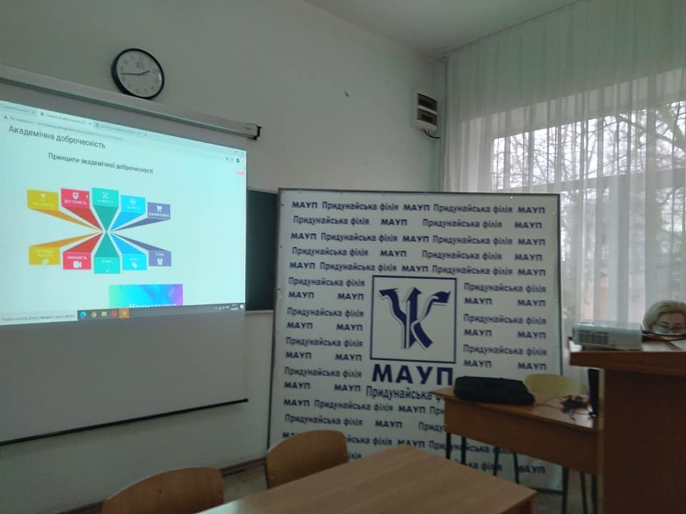 У Придунайській філії ПрАТ "ВНЗ "МАУП" відбулася зустріч директорки, професорки Гуменникової Т. Р. зі студентським активом у межах навчання новообраного студентського активу філії. Розглядалися питання академічної доброчесності. Директор ознайомила присутніх з результатами анкетування студентів філії за результатами навчання в змішаній формі роботи. Звернула увагу студентів на матеріали та документи, розташовані на сайті Придунайської філії в опції "Академічна доброчесність".
