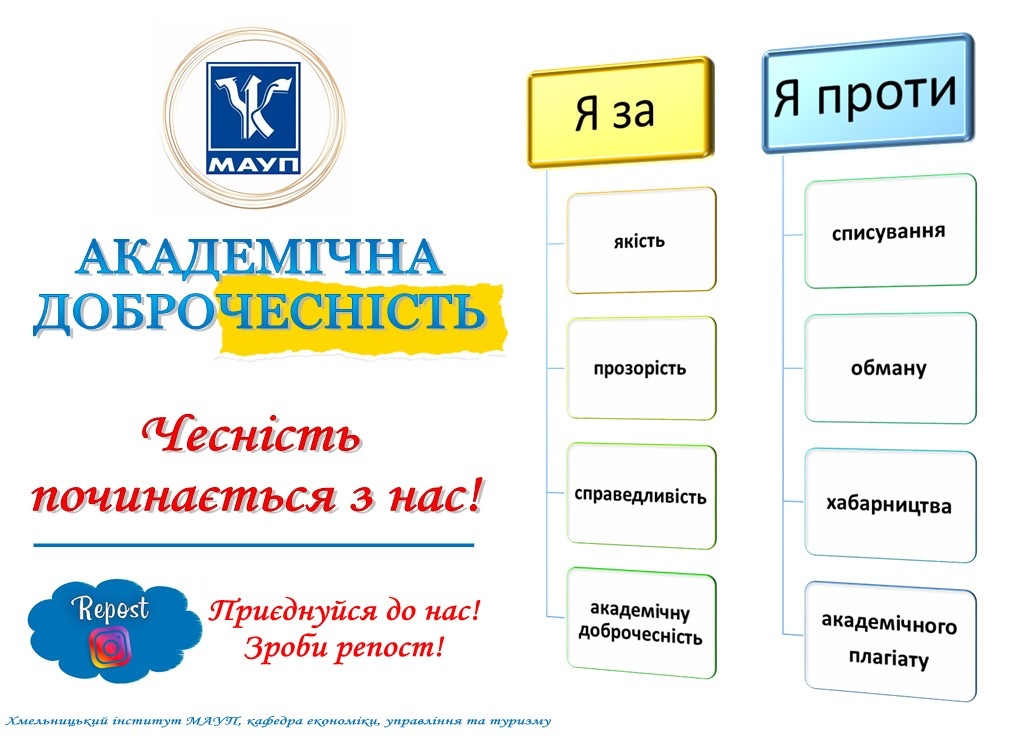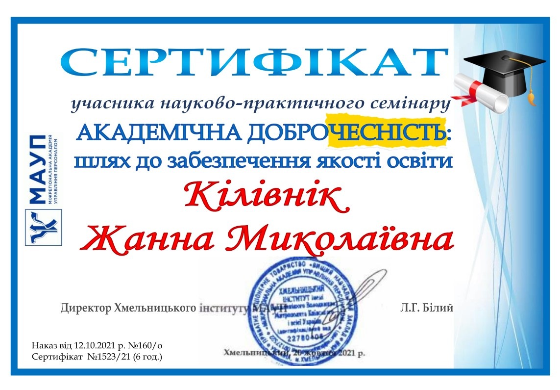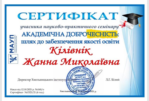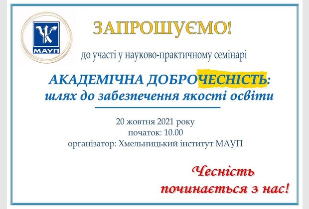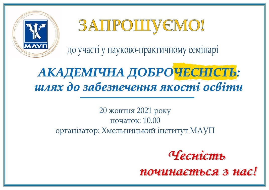 20 жовтня 2021 року у Хмельницькому інституті МАУП відбувся науково-практичний семінар «Академічна доброчесність: практичний досвід».