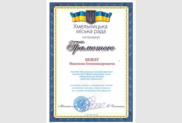 Завжди привітний, надзвичайно розумний та активний – так про Максима говорять викладачі та студенти Хмельницького економіко-правового фахового коледжу МАУП.