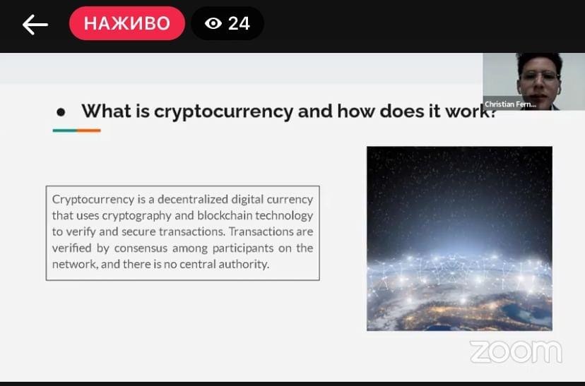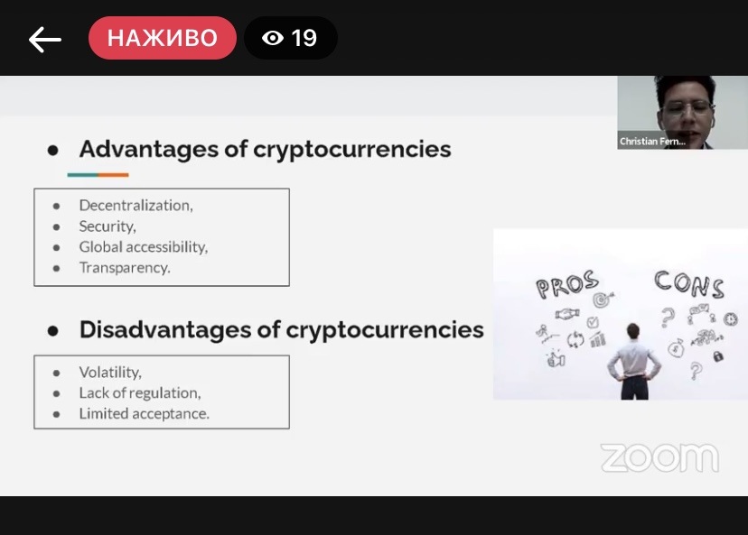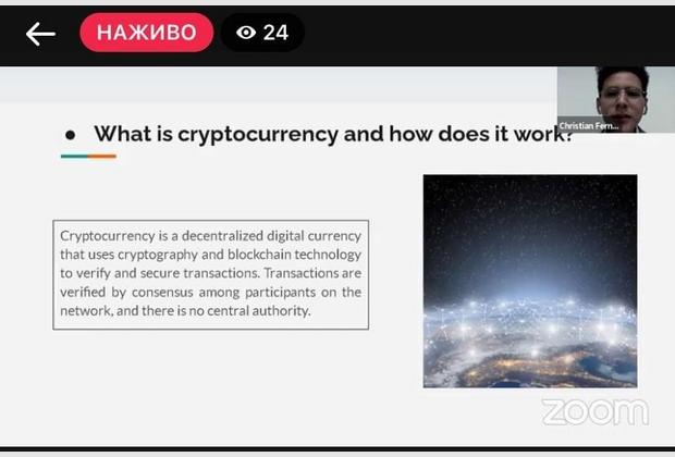 Далі з доповіддю на тему "The Impact of Cryptocurrency on the Development of the World Economy" виступив Фернандес Реа Крістіан Еліас.