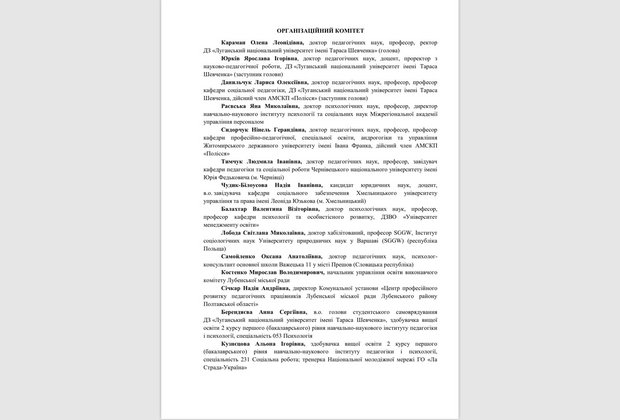 До складу організаційного комітету включена Раєвська Яна Миколаївна, доктор психологічних наук, професор, директор навчально-наукового інституту психології та соціальних наук Міжрегіональної академії управління персоналом.