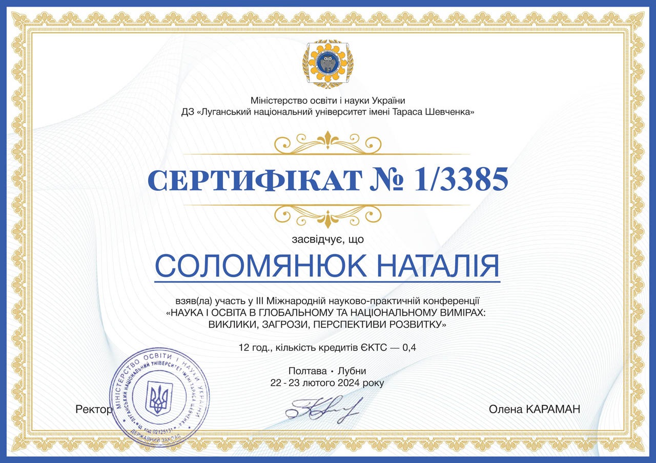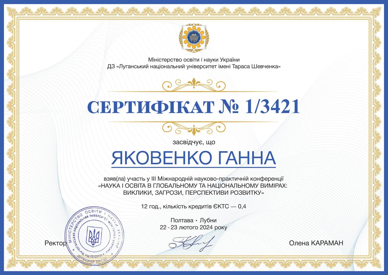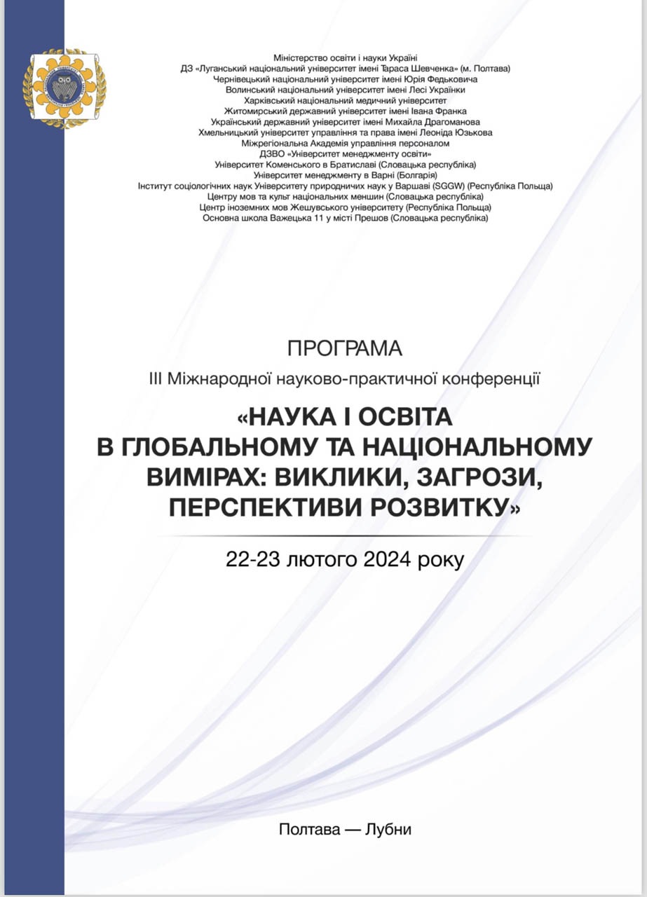 Здобувачі другого та третього рівнів вищої освіти спеціальності 053 Психологія та науково-педагогічні працівники Інституту прийняли участь у ІІІ Міжнародній науково-практичній конференції «Наука і освіта в глобальному та національному вимірах: виклики, загрози, перспективи розвитку».
