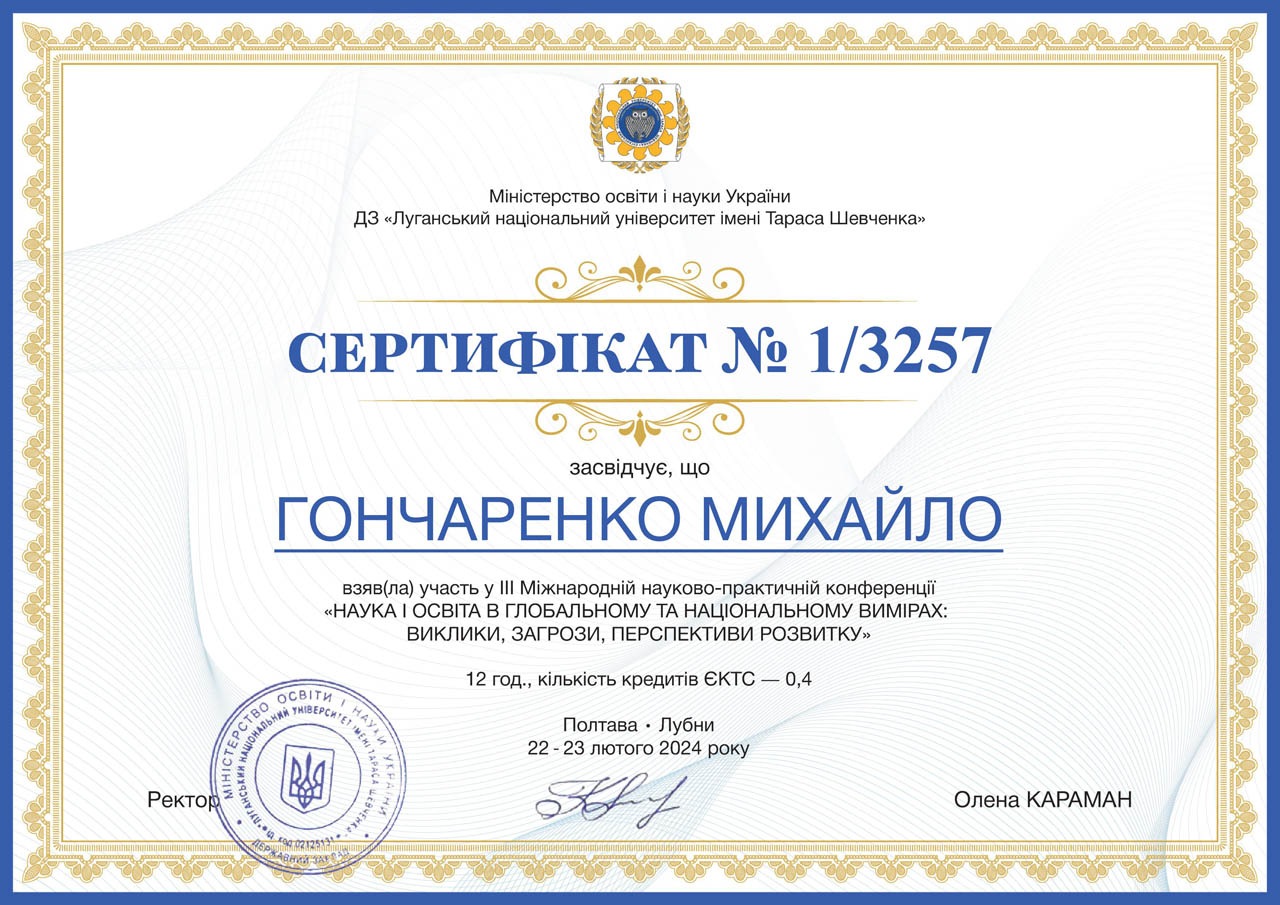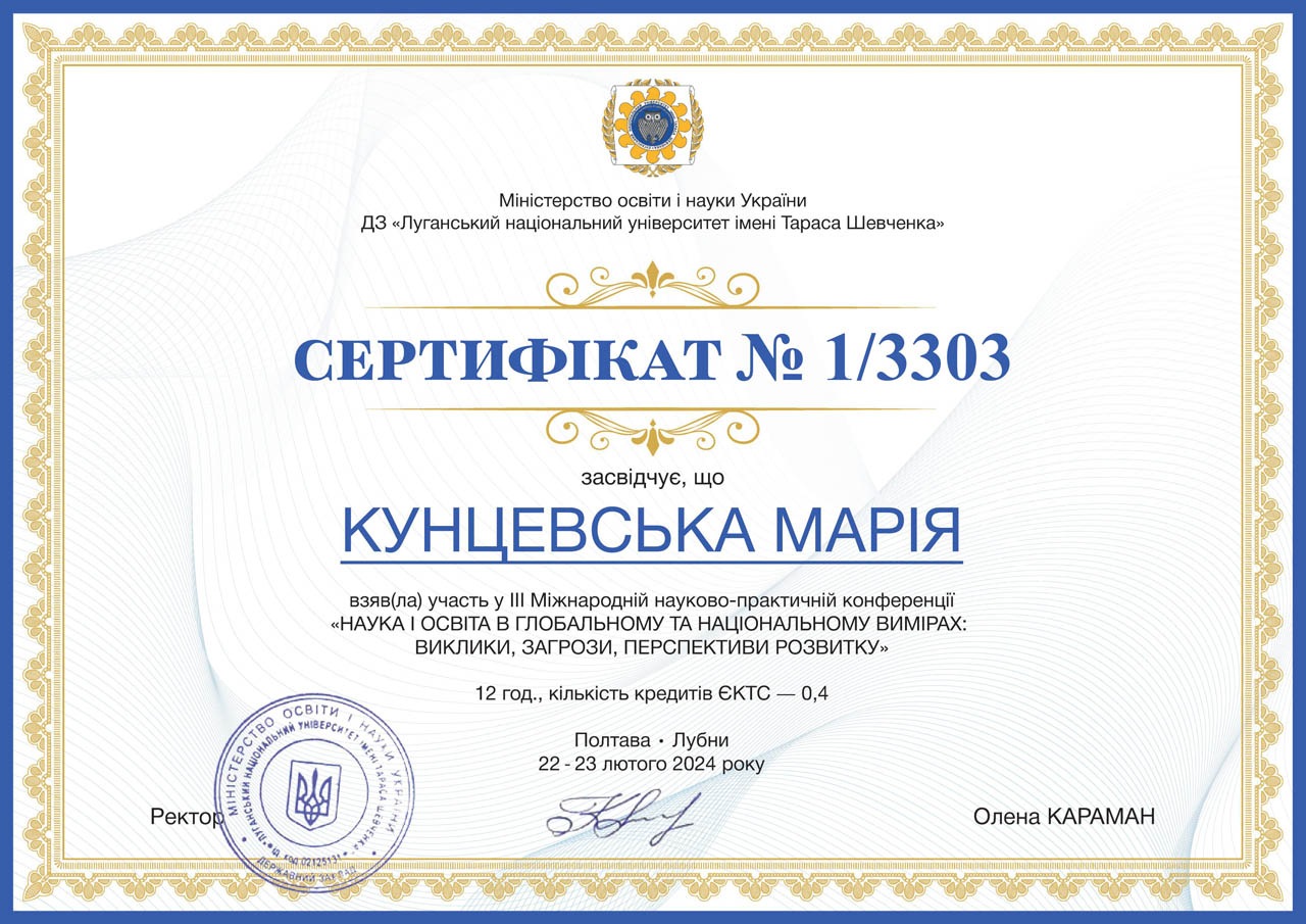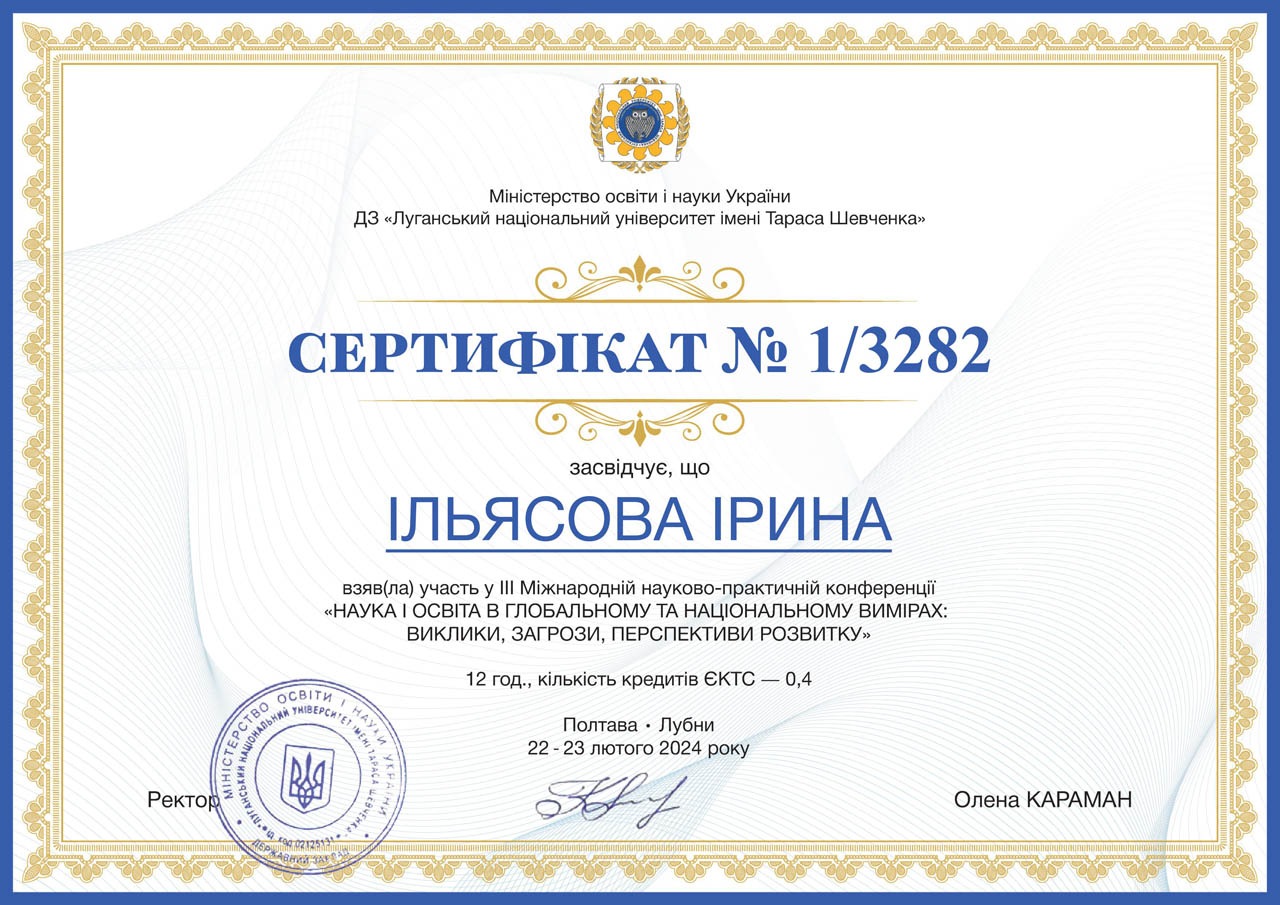 Здобувачі другого та третього рівнів вищої освіти спеціальності 053 Психологія та науково-педагогічні працівники Інституту прийняли участь у ІІІ Міжнародній науково-практичній конференції «Наука і освіта в глобальному та національному вимірах: виклики, загрози, перспективи розвитку».
