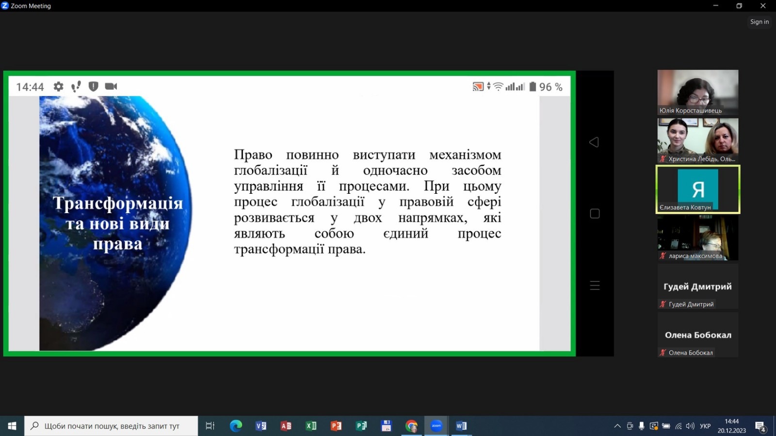 20 грудня 2023 року доцент кафедри права та правоохоронної діяльності Хмельницького інституту МАУП Ольга Охман та студентка 3 курсу спеціальності 081 Право Христина Лебідь взяли участь у ІІ Всеукраїнській науково-теоретичній конференції «Глобалізаційні процеси та їх вплив на соціально-економічний та правовий розвиток України». Христина виступила з доповіддю: «Докази та доказування у цивільному процесі України».