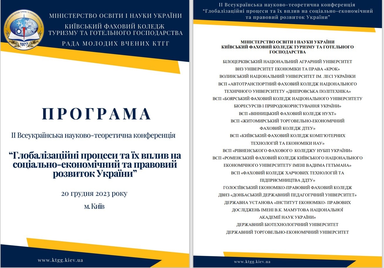 Організаторами конференції виступили Міністерство освіти і науки України, Київський фаховий коледж туризму та готельного господарства, Рада молодих вчених КТГГ.