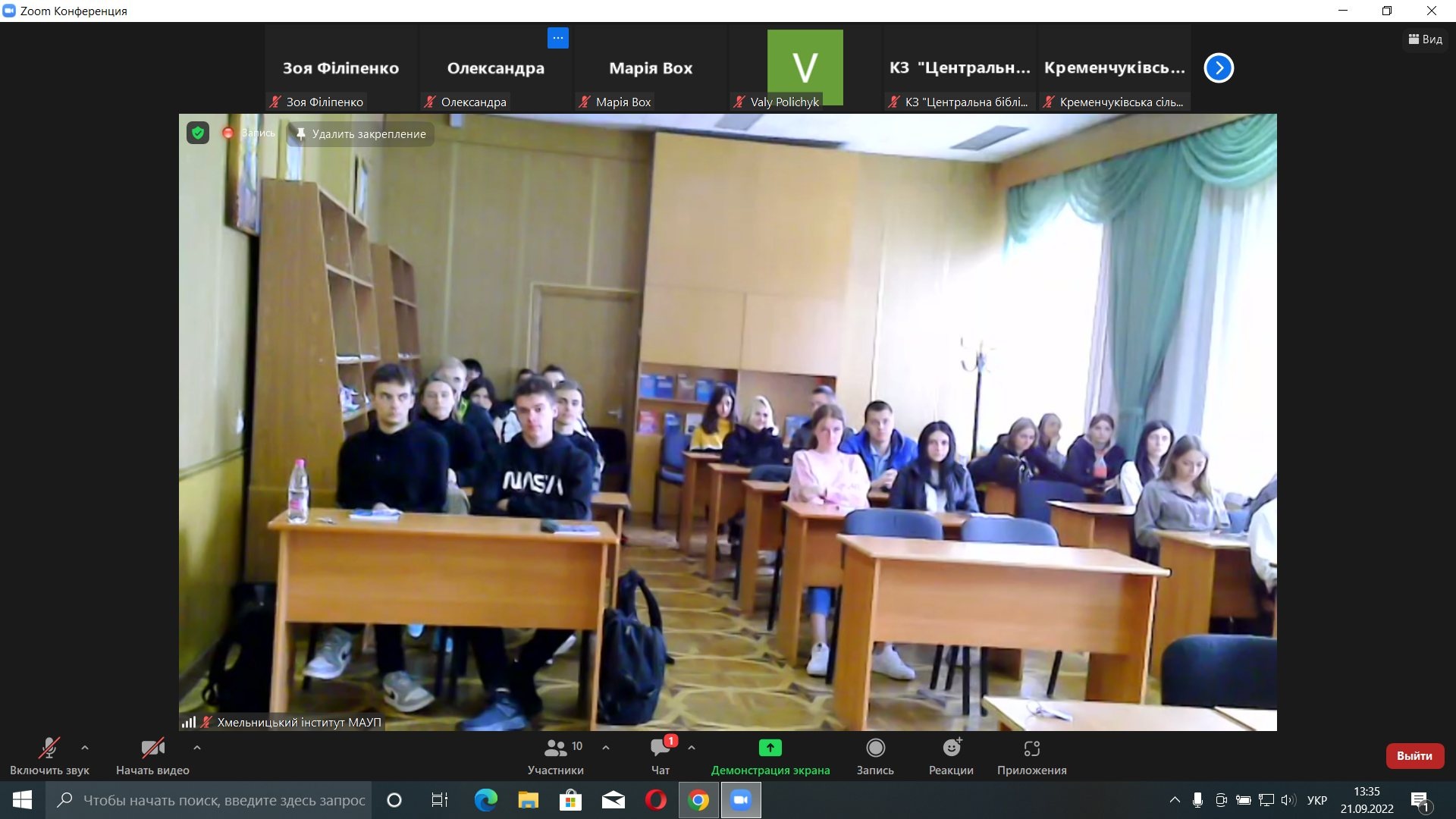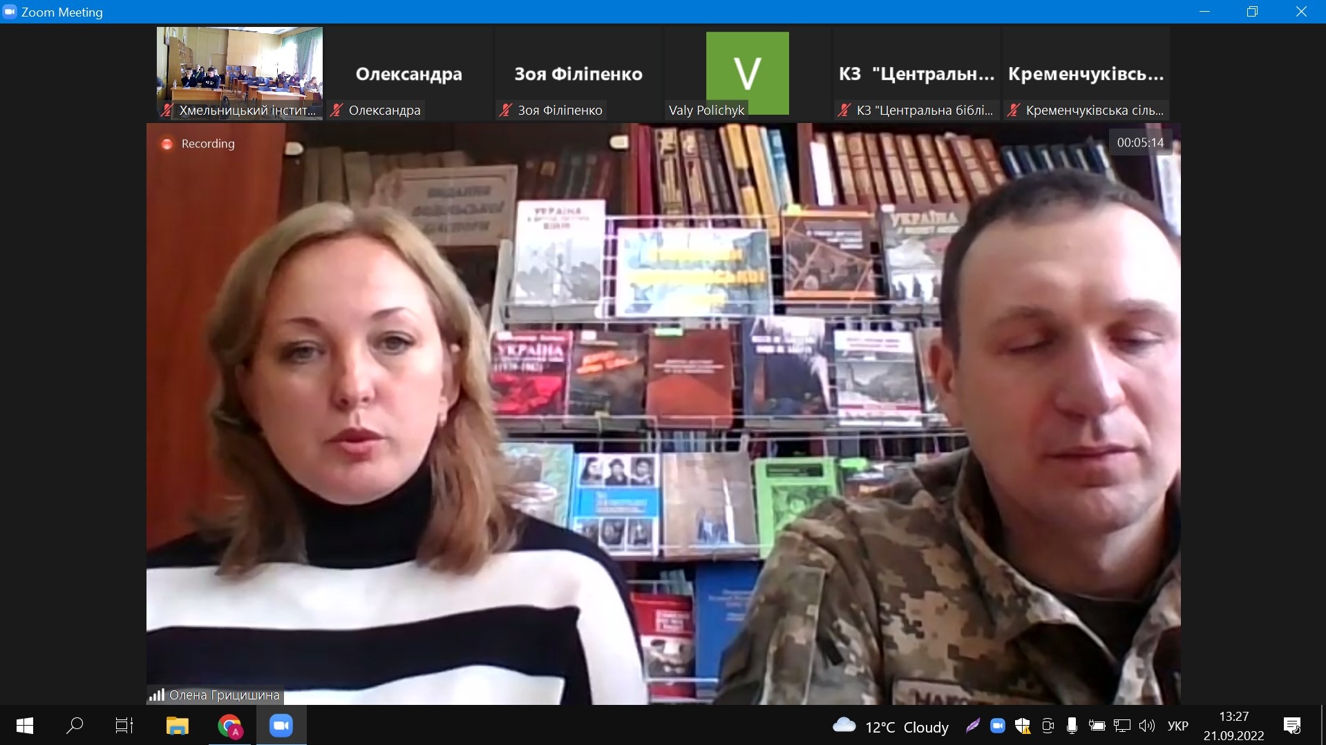 21 вересня 2022 року студенти 2 і 3 курсів спеціальності «Право» взяли участь в історичній годині «За честь, за волю, за українську долю», присвяченій Дню партизанської слави України. Даний захід проводила Хмельницька обласна універсальна наукова бібліотека у форматі онлайн на платформі ZOOM.