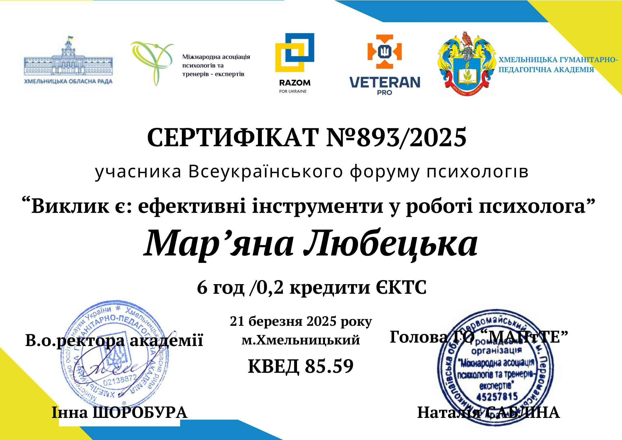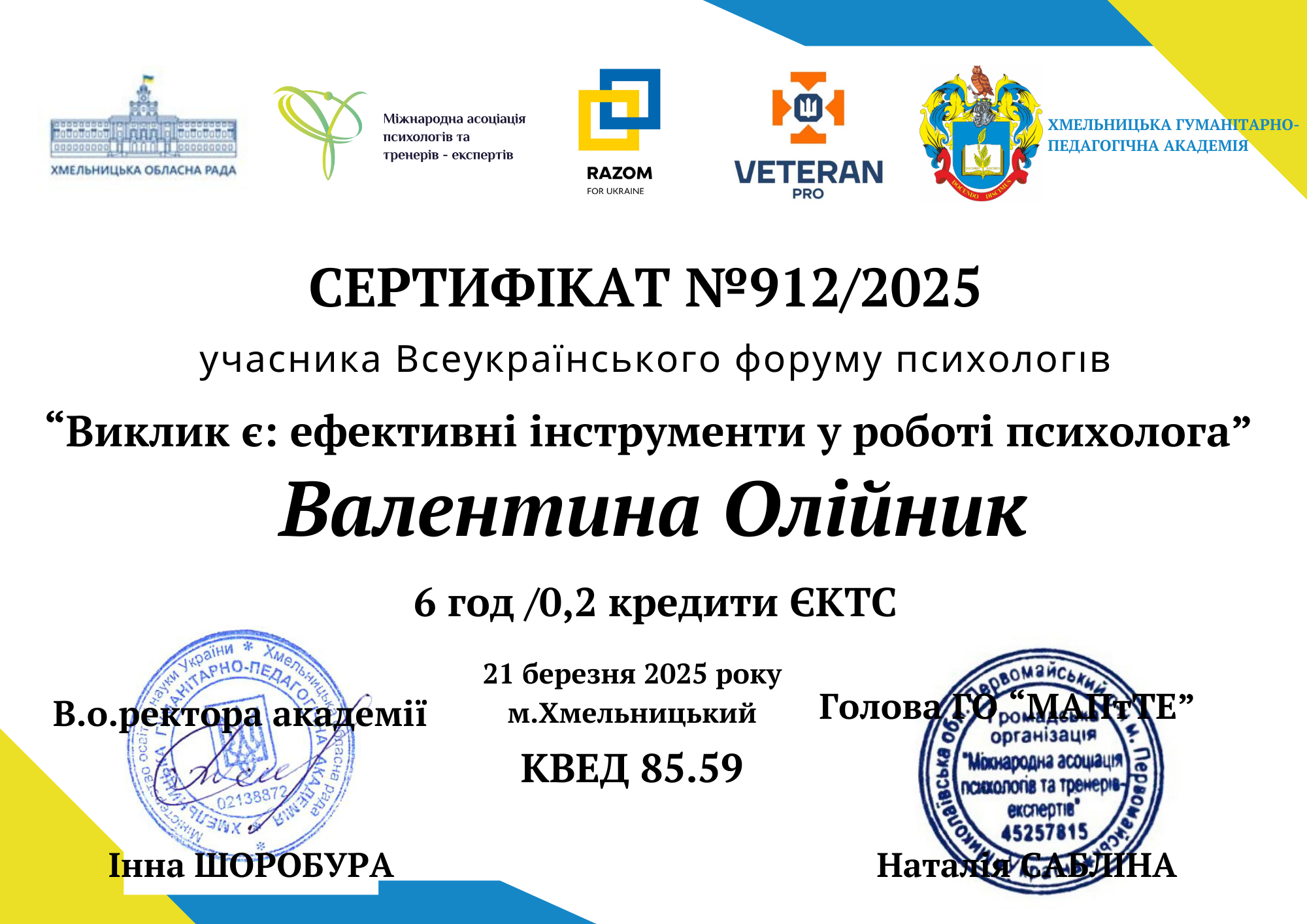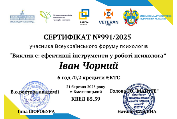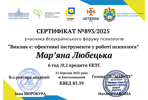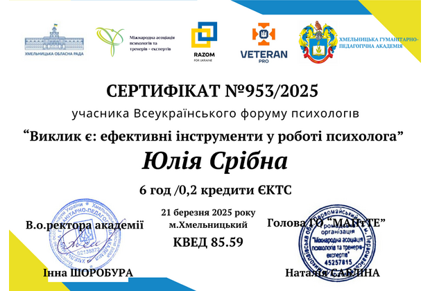 21 березня 2025 року студенти-психологи бакалаврату і магістратури разом із викладачами кафедри психології Хмельницького інституту МАУП взяли участь у Всеукраїнському психологічному форумі «Виклик є: ефективні інструменти у роботі психолога».