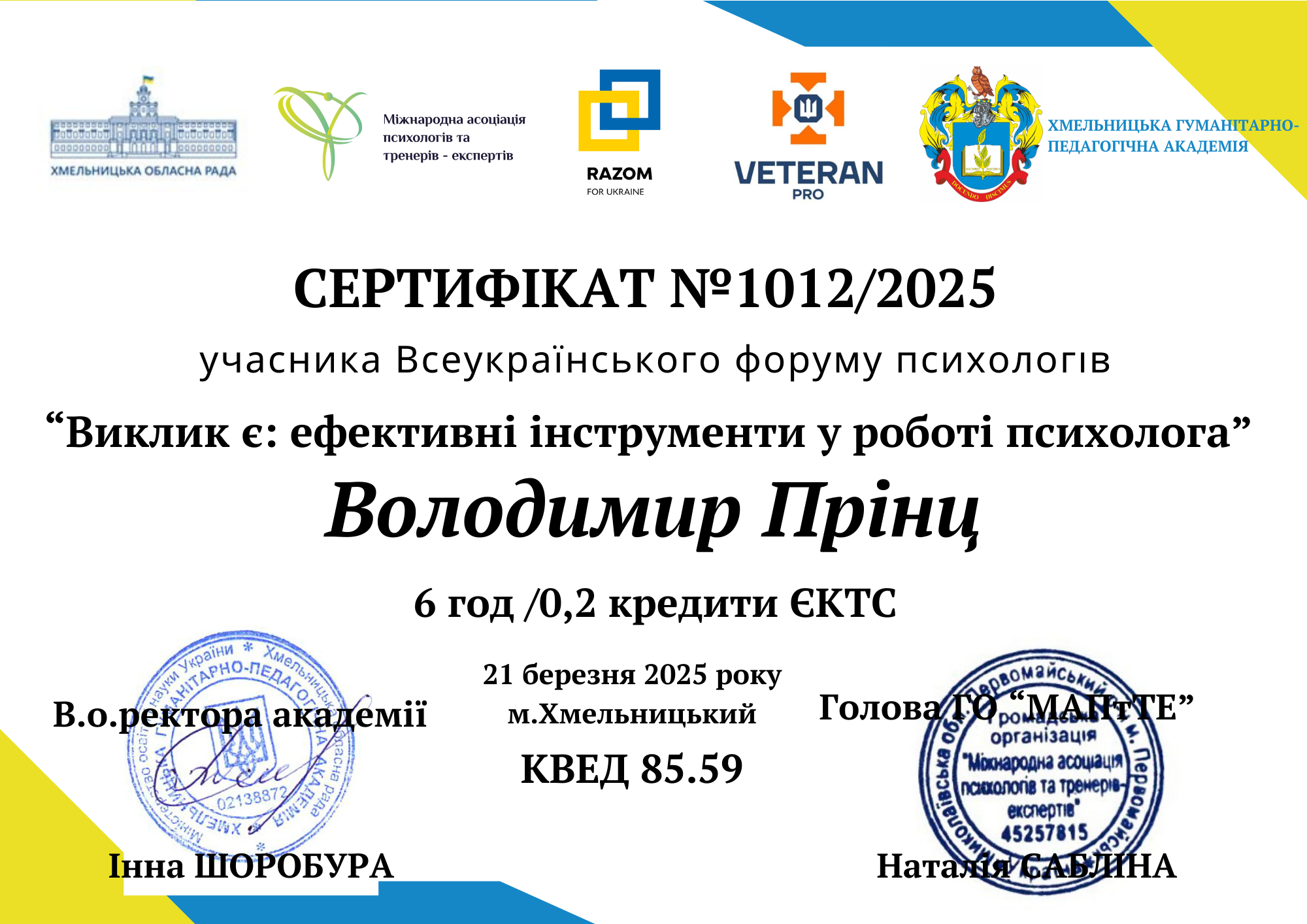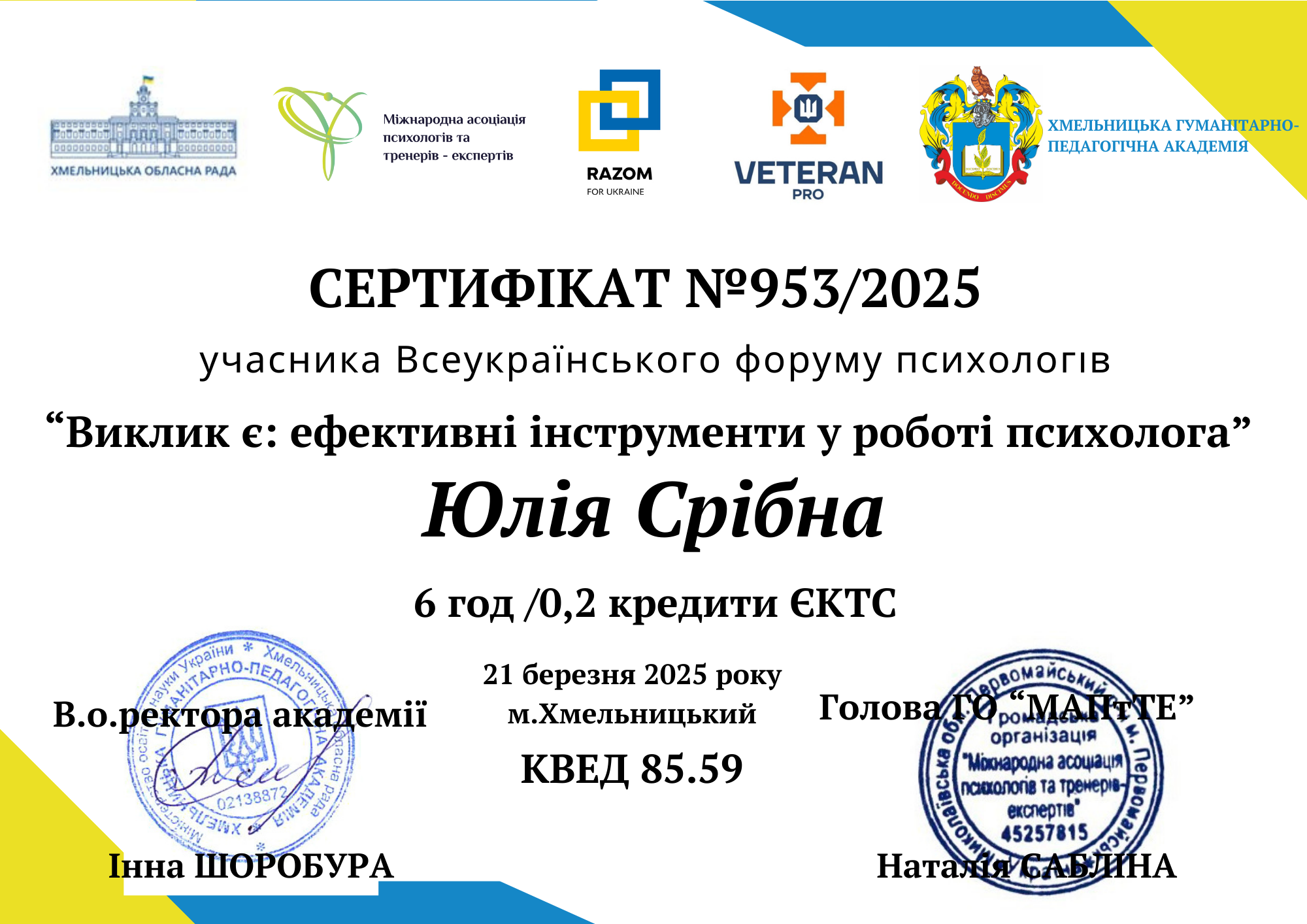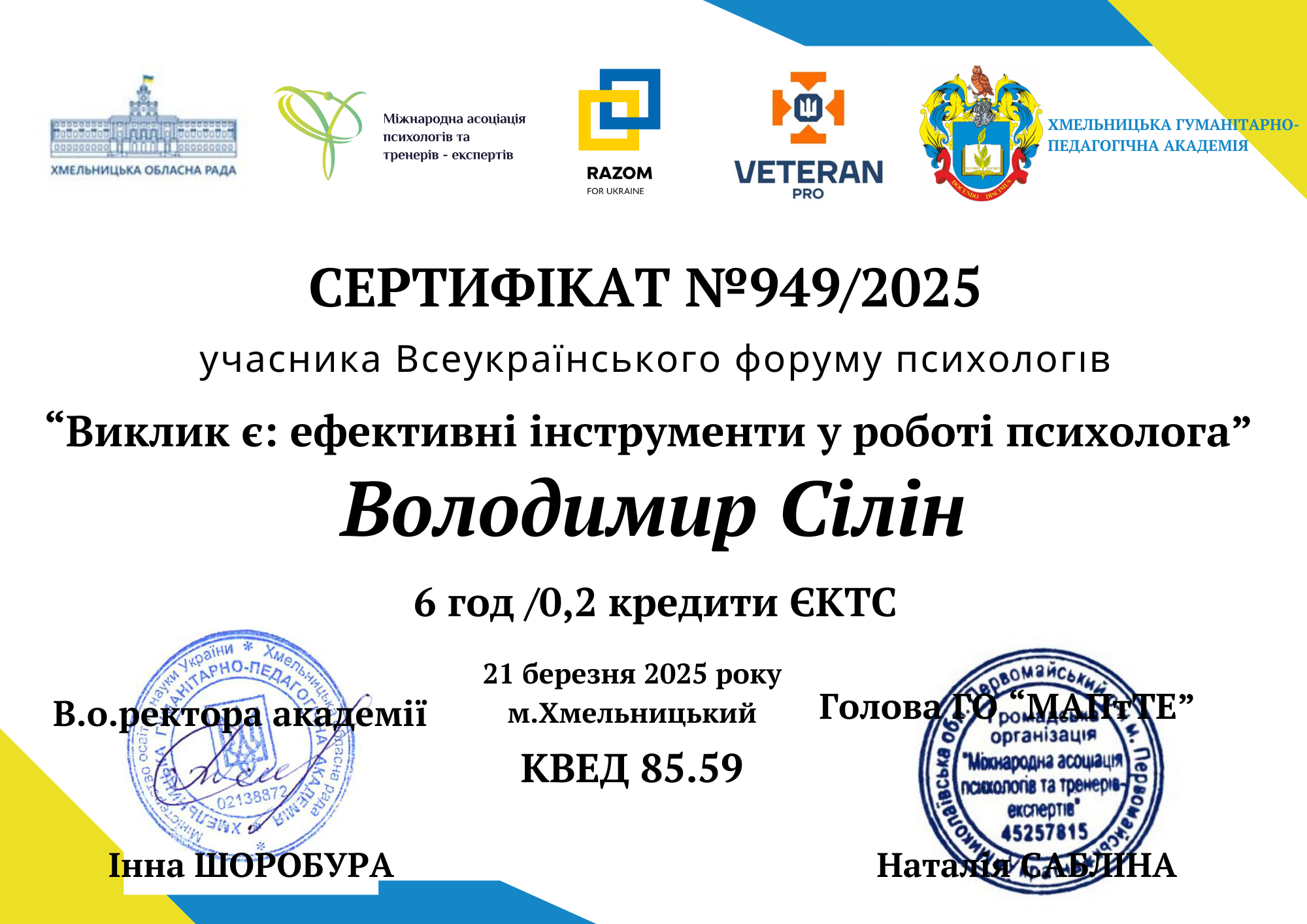 21 березня 2025 року студенти-психологи бакалаврату і магістратури разом із викладачами кафедри психології Хмельницького інституту МАУП взяли участь у Всеукраїнському психологічному форумі «Виклик є: ефективні інструменти у роботі психолога».