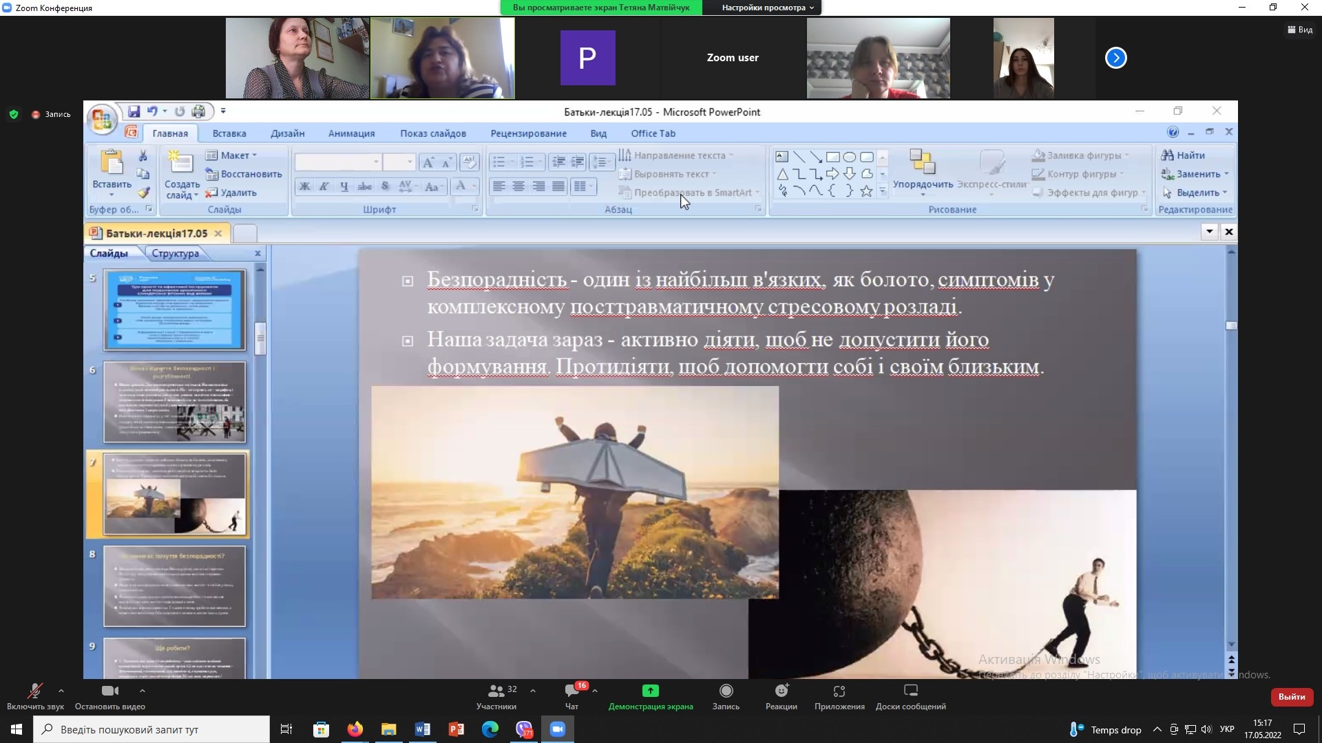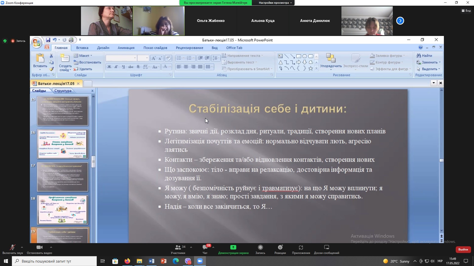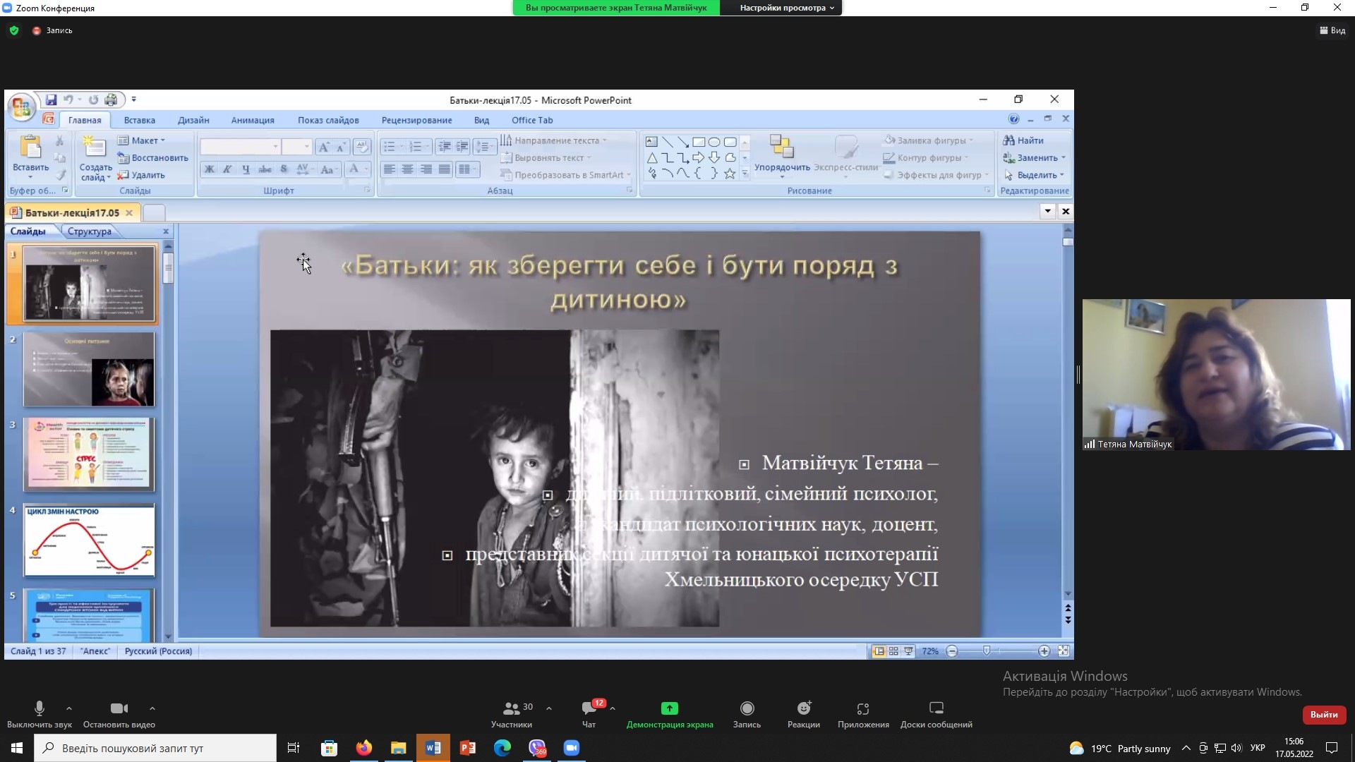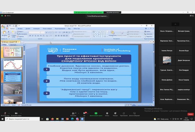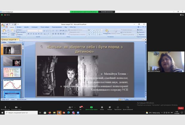 17 травня 2022 року здобувачі вищої освіти 1-4 курсів спеціальності «Психологія» і викладачі кафедри психології Хмельницького інституту МАУП взяли участь у черговій тематичній лекції «Батьки: як зберегти себе і бути поряд із дитиною».