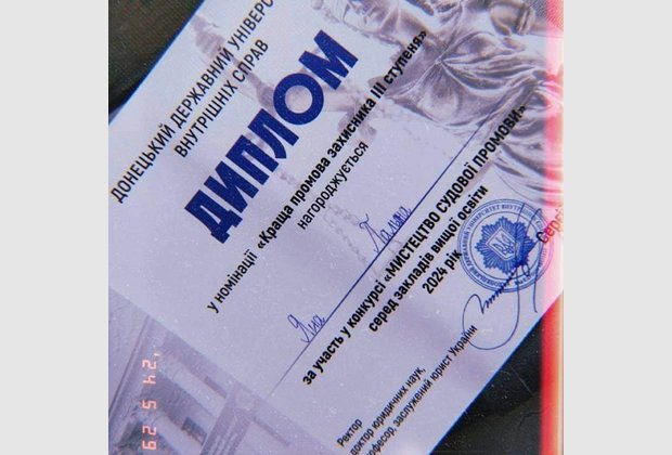 Студентки третього курсу спеціальності "Право" Центральноукраїнського інституту МАУП Пальона Яна та Соловйова Вікторія під керівництвом завідувача кафедри правознавства Зеленського Сергія Миколайовича взяли участь в конкурсі «Мистецтво судової промови» серед закладів вищої освіти у Донецькому державному університеті внутрішніх справ.