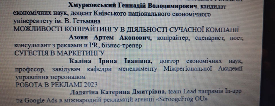 Професор кафедри маркетингу Каліна Ірина взяла участь в Круглому столі «МАРКЕТИНГОВИЙ МІКС У ДІЇ – 3» із темою виступу: "Сугестія в маркетингу", який традиційно проводить Кафедра маркетингу та поведінкової економіки КРОК