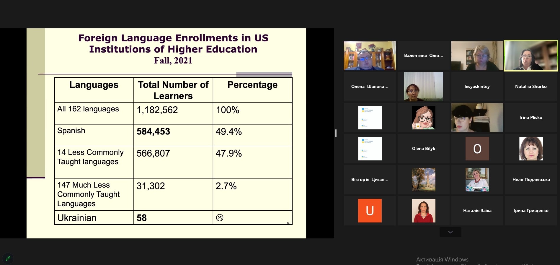 Про розвиток української програми словʼянських мов у Мічіганському Університеті окреслила у своєму виступі Світлана РОГОВИК, директор Програми словʼянських мов, викладач кафедри слов’янських мов та літератури Мічіганського Університету.