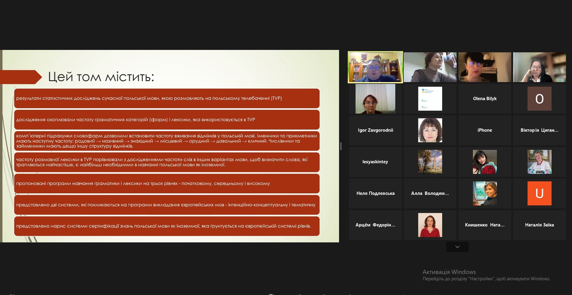 21 грудня 2023 року доцент кафедри фундаментальної підготовки Хмельницького інституту МАУП Валентина Олійник взяла участь у VIІІ стратегічній сесії «Українські студії в славістиці: візуалізація».