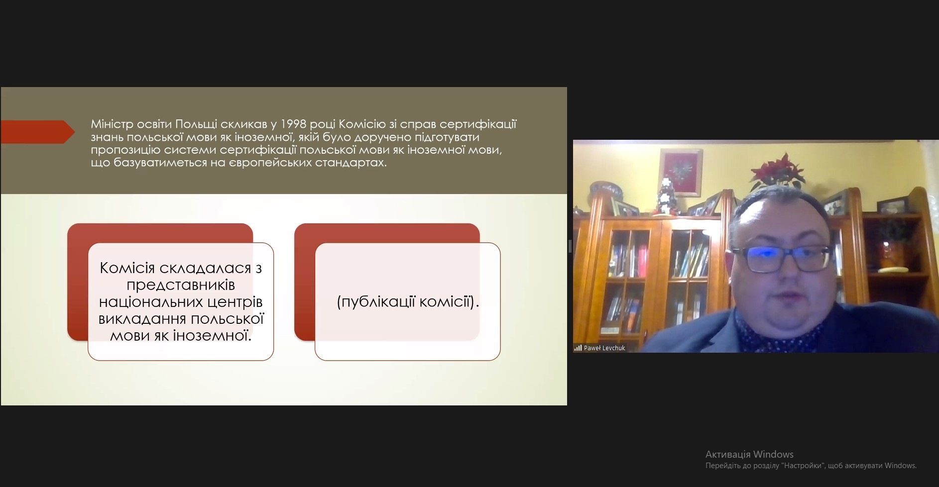 Про Європейські стандарти в сертифікації слов’янських мов на прикладі польської мови розкрив у своїй доповіді Павел ЛЕВЧУК, доктор гуманітарних наук, ад’юнкт Інституту славістики польської академії наук.