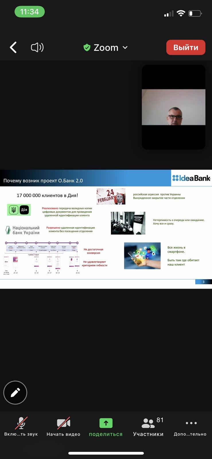 А також обговорювали такі теми: консолідація банків у питаннях інтеграції діджитал технологій, страхування під час війни, організація інтелектуального робочого місця для співробітників, які працюють в офісі, банківські та фінансові установи в умовах воєнного часу.
