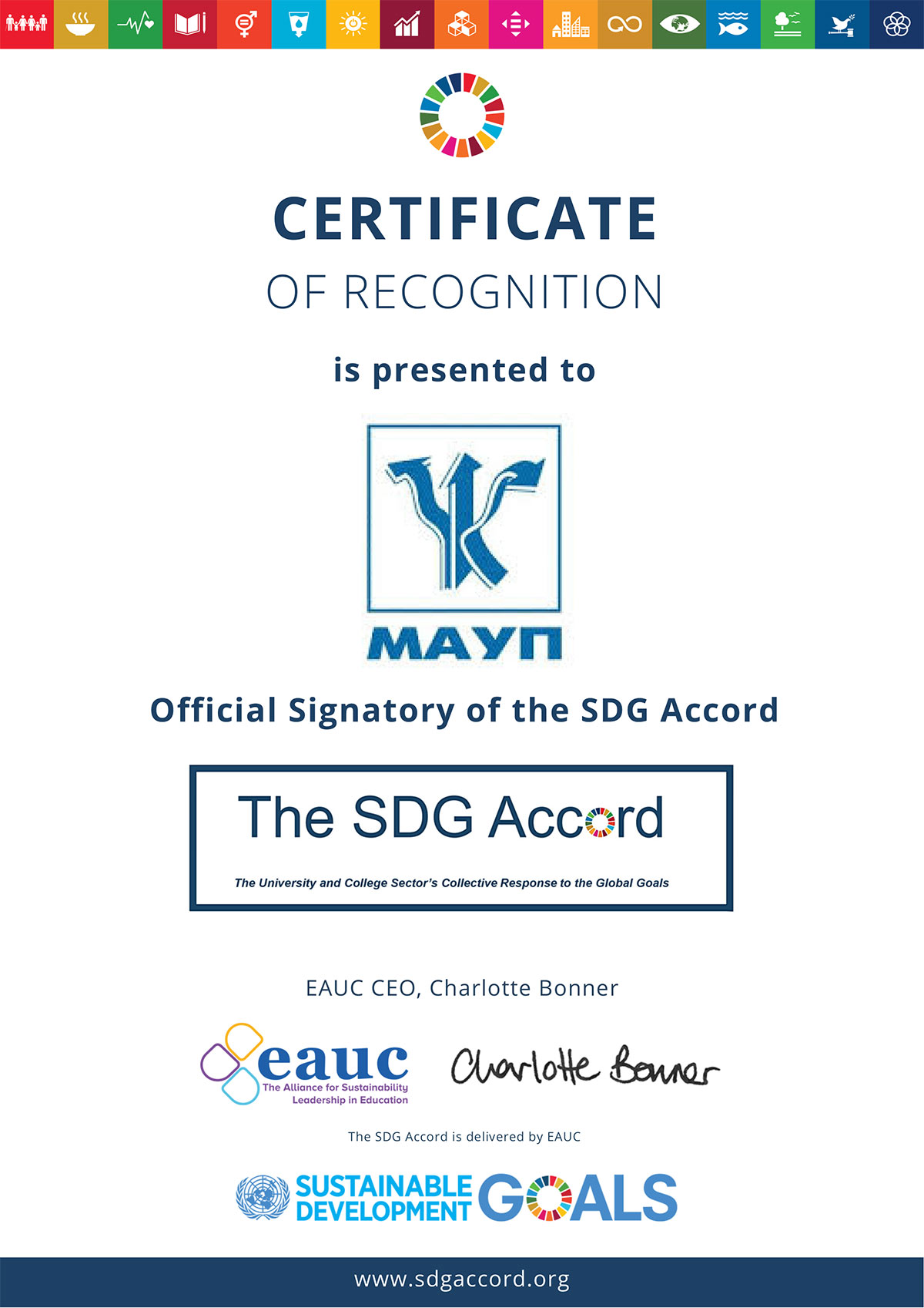 #SDGAccord Міжрегіональна Академія управління персоналом перша з закладів вищої освіти України приєдналась до Угоди про досягнення Цілей Сталого Розвитку у рамках глобального альянсу мереж зі сталого розвитку у закладах вищої освіти та студентської спільноти.