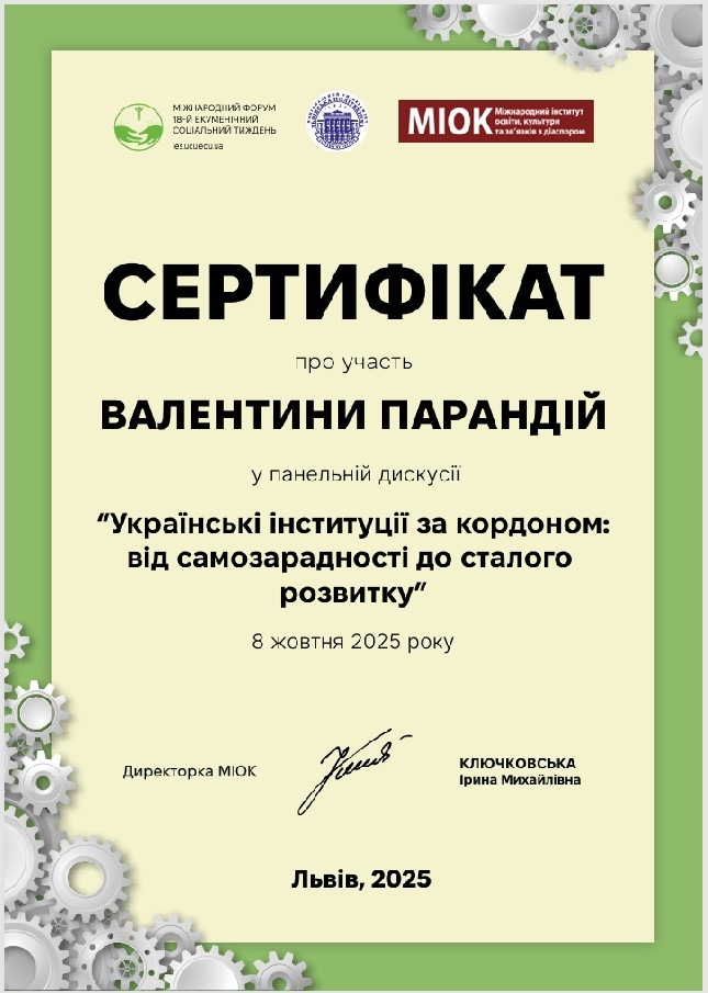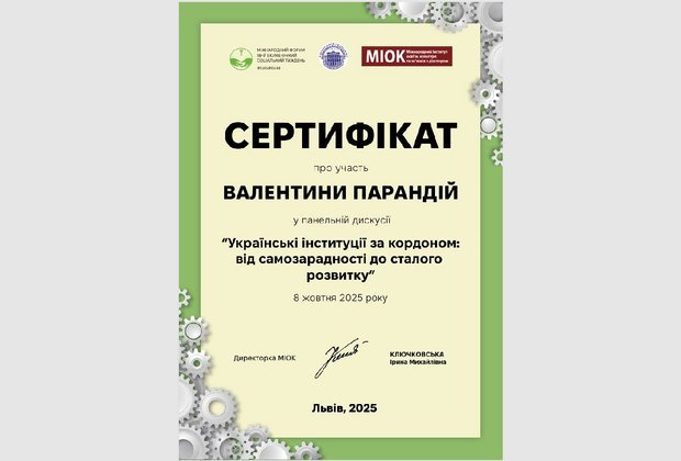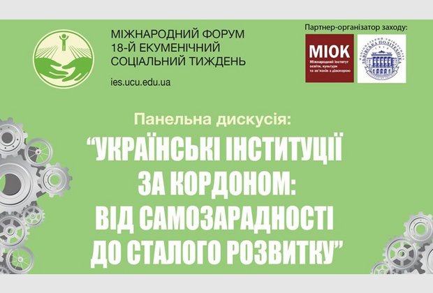 8 жовтня 2025 року в Залі Юліана Захарієвича Національного університету «Львівська політехніка» у межах 18-го Екуменічного соціального тижня відбулася панельна дискусія «Українські інституції за кордоном: від самозарадності до сталого розвитку». Організатором події став Міжнародний інститут освіти, культури та зв’язків з діаспорою (МІОК). Дискусія відбувалась у змішаному форматі й об’єднала учасників із 29 країн. Упродовж дискусії учасники зосередили увагу на тому, як українські інституції, організації та ініціативи за кордоном пройшли шлях від реагування на нагальні виклики до стратегічного розвитку, формування партнерств і зміцнення своєї стійкості.