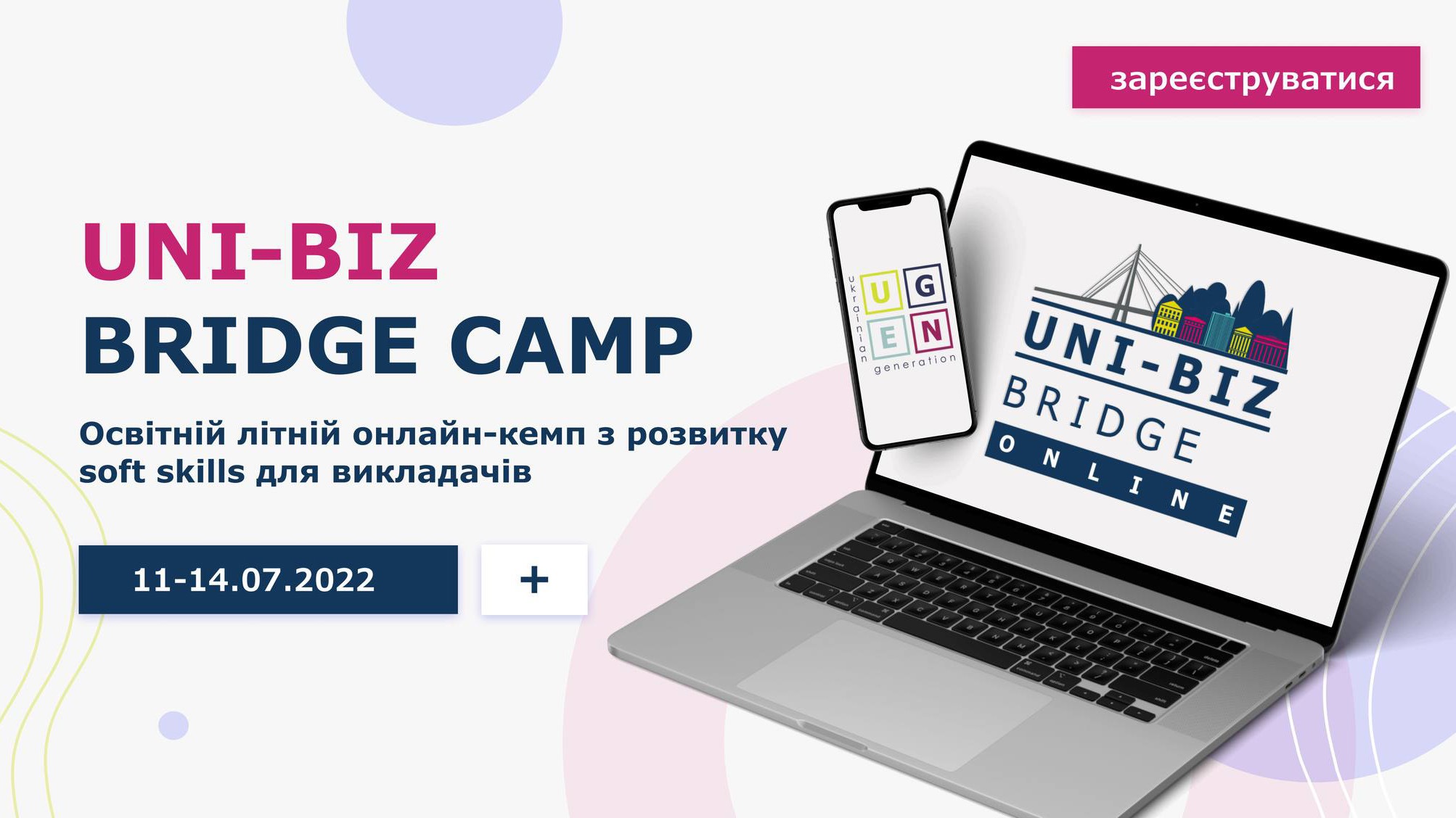 Проєк організовано компанією UGEN і SoftServe та Національним банком України. Uni-Biz Bridge Camp – освітній літній онлайн-кемп із розвитку soft skills для викладачів.