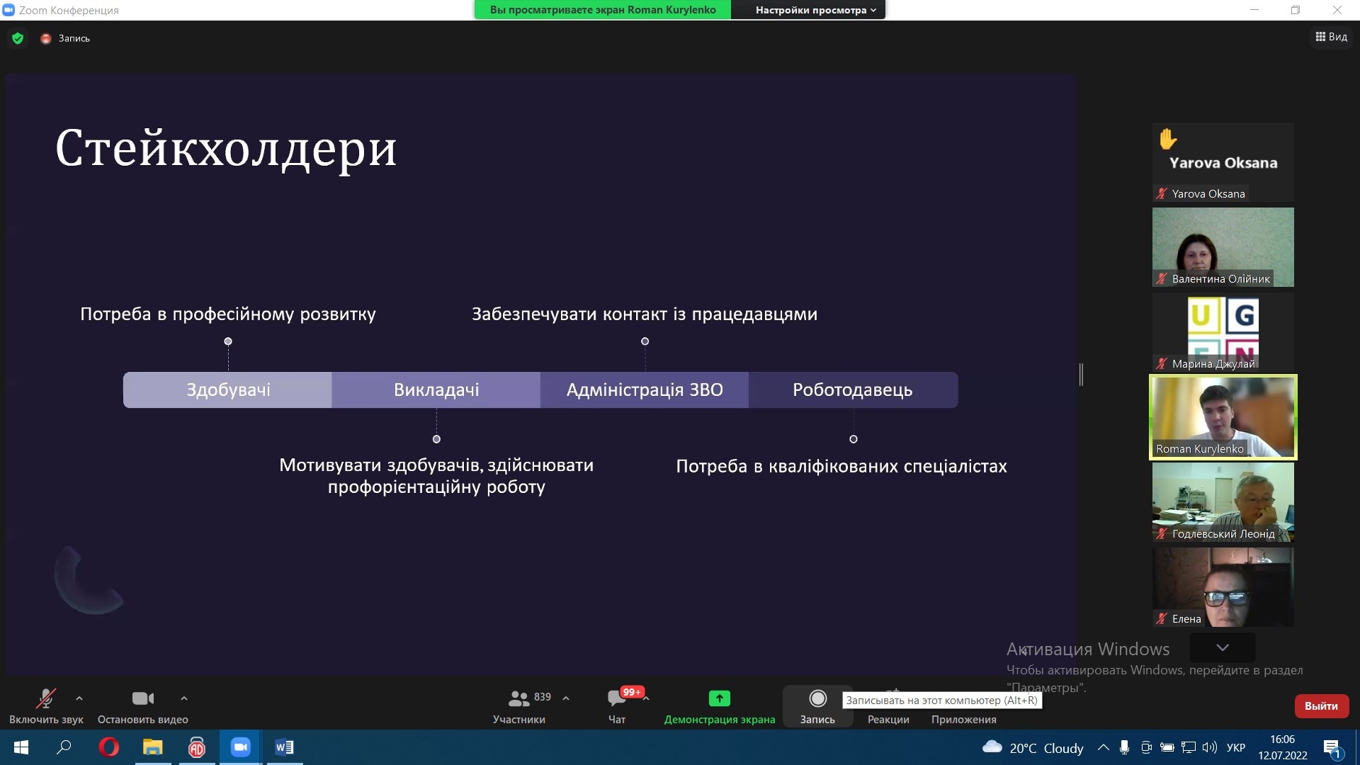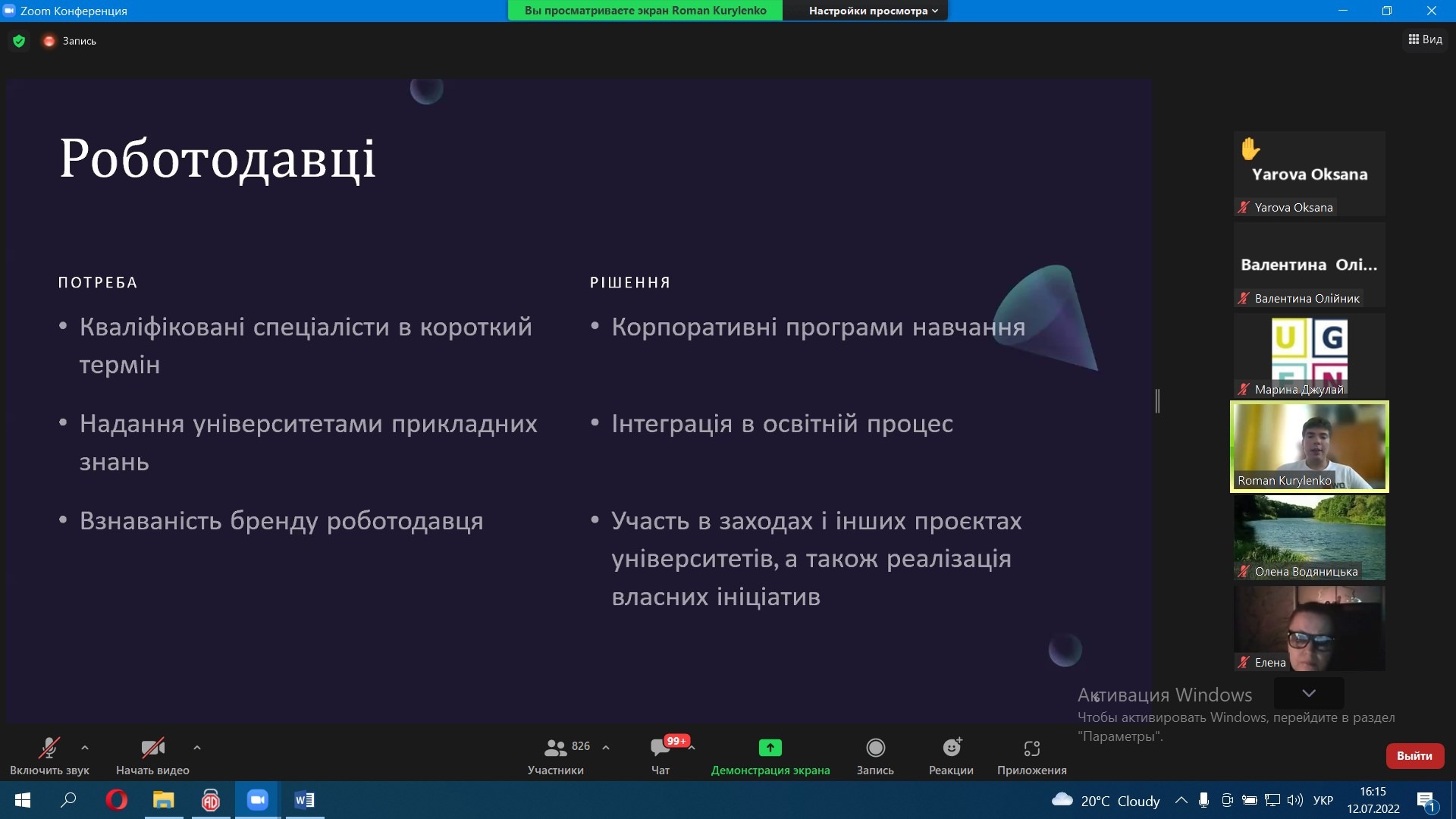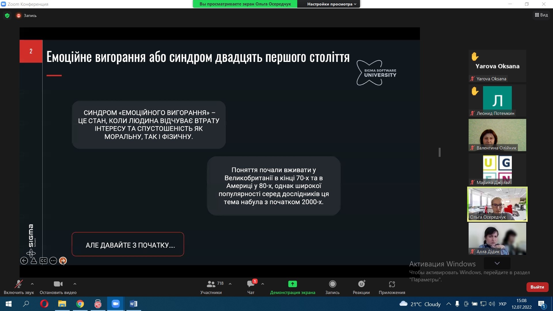 З 11 липня по 13 липня 2022 року спільнота викладачів України слухали тренерів різного фаху, які порушували актуальні проблеми: «Нові підходи до викладання та комунікації зі студентами», «Професійне вигорання», «Стратегія win-win-win: студенти – роботодавці – університети», «Діджиталізація освіти», «Як вести соцмережі університету?».