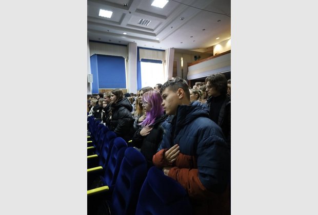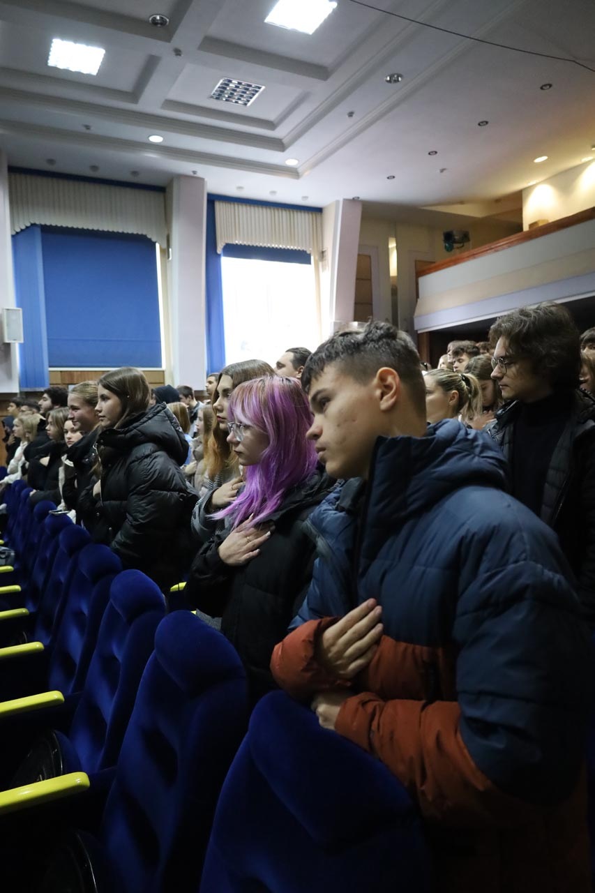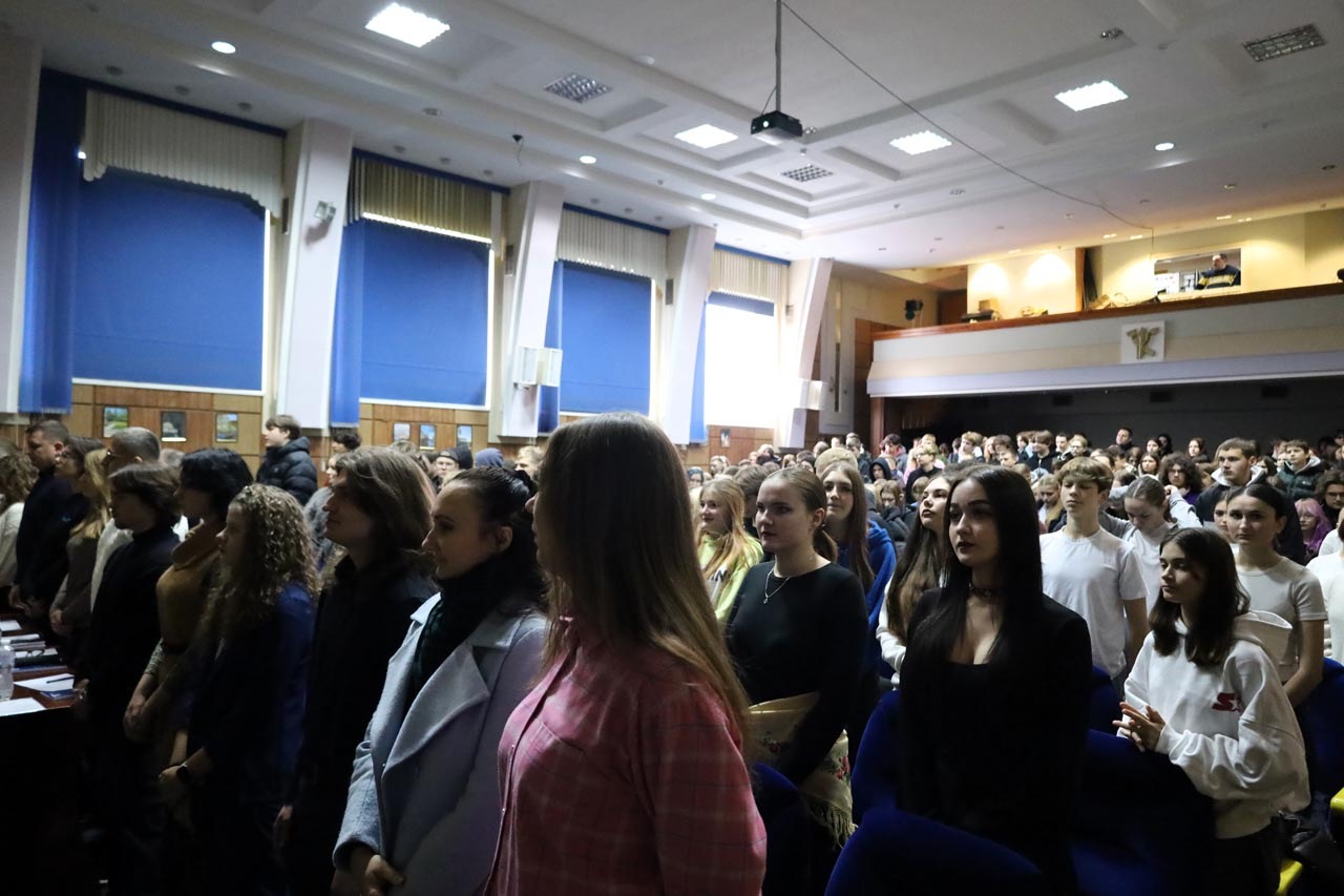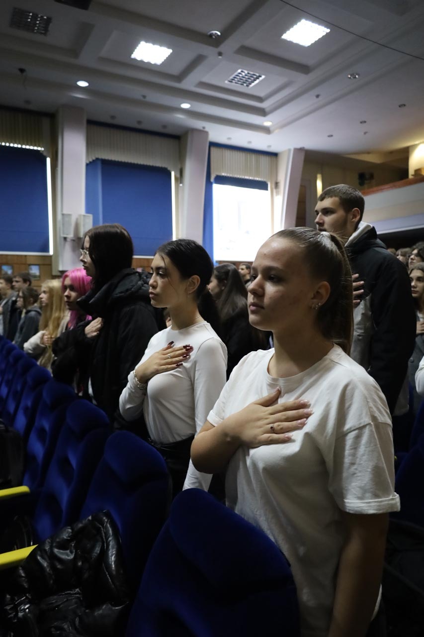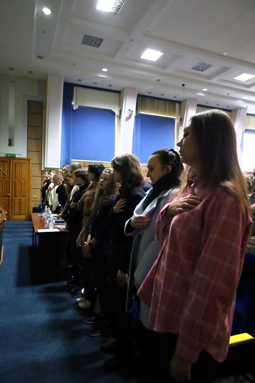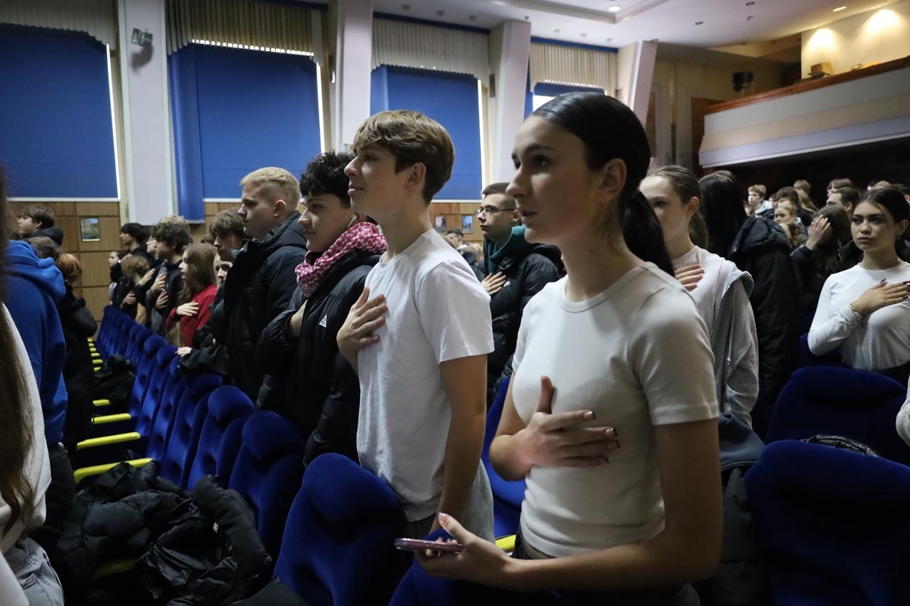 Свято розпочалося зі вступного слова ведучої, після якого присутні вшанували пам’ять полеглих захисників хвилиною мовчання та виконали Гімн України. Уже з перших хвилин зал наповнився урочистістю, вдячністю та єдністю.